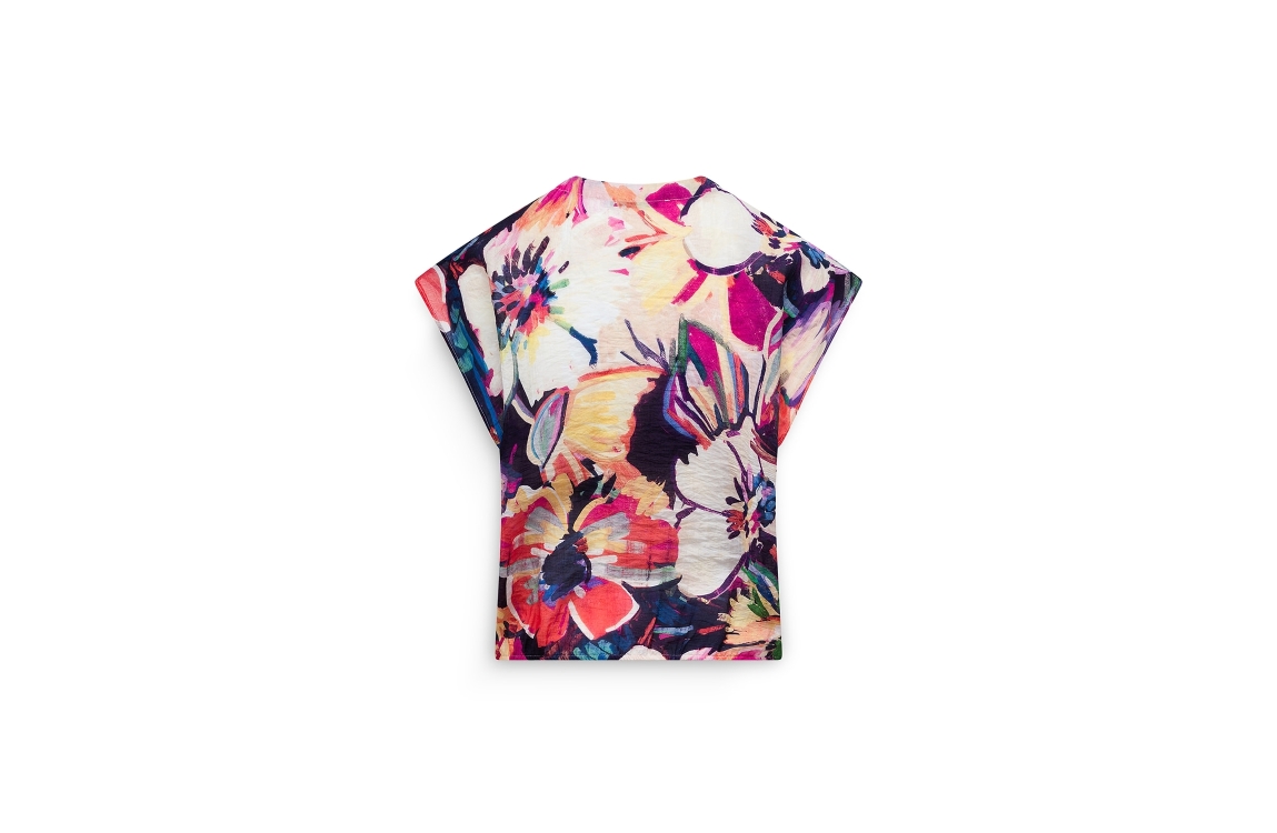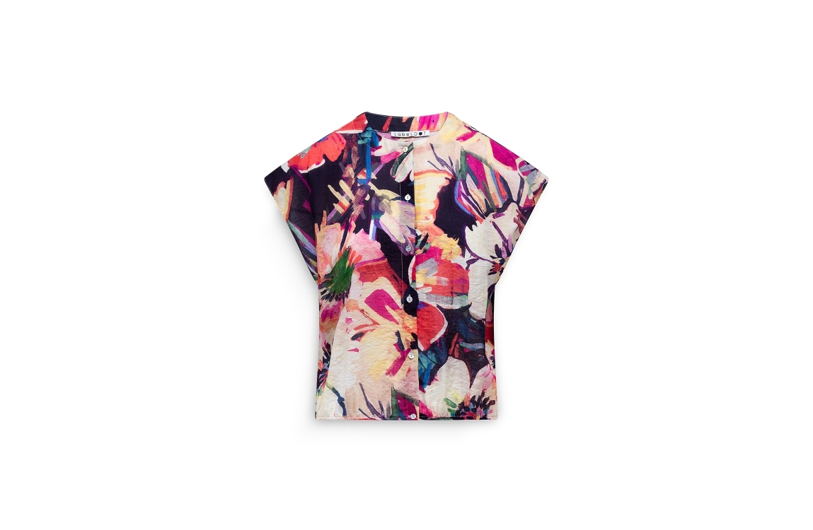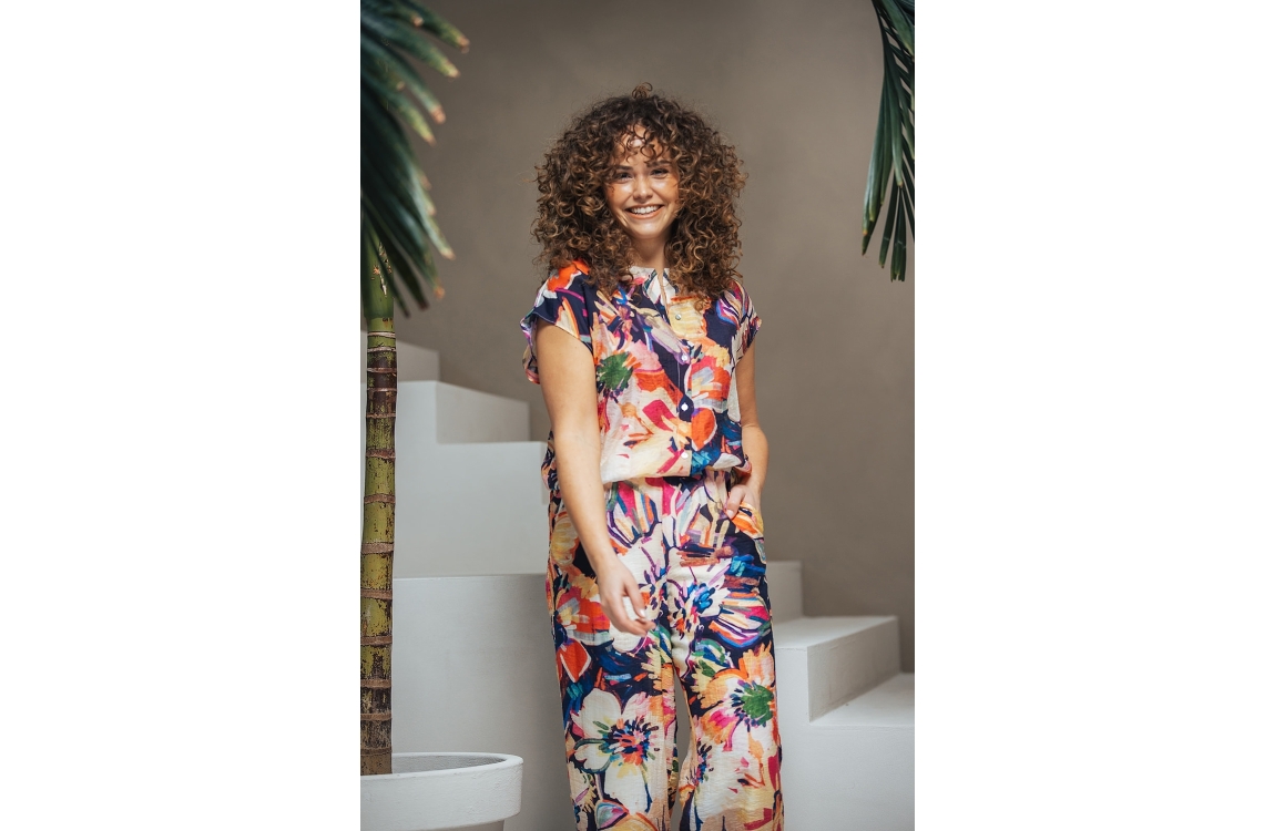 Label Dot blouse 2611048 620. Dit rechtvallende model heeft een ronde halslijn en gedropte schoudernaden. Deze multi-colour blouse van Label Dot is all-over bewerkt met eeen bloemenprint in verschillende kleuren en is afgewerkt met een elastische zoom. Het model sluit aan de voorzijde door middel van knopen.