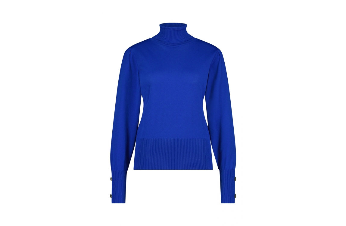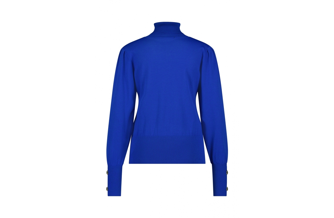 Label Dot pullover Melisa. Dit rechtvallend model is voorzien van een col en heeft lange mouwen. Deze blauwe pullover van Label Dot is bij de mouwen afgewerkt met decoratieve goudkleurige hartjes knopen.