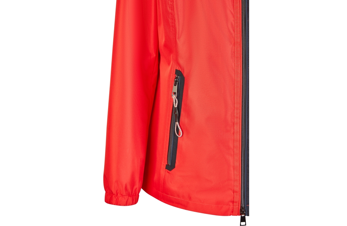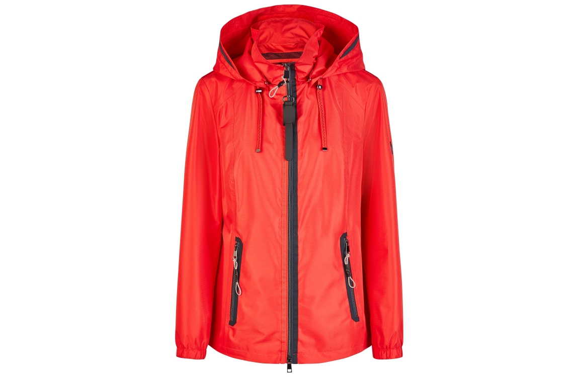 Barbera Lebek tussenjas 50390062. Dit rechtvallend model heeft een afneembare capuchon, lange mouwen en sluit door middel van knopen en een rits. Deze rode tussenjas van Barbera Lebek beschikt over ritszakken op het voorpand en trekkoorden.