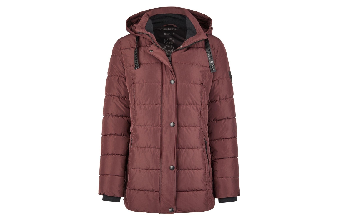 Lebek Jacke m. Kapuze 495 Burgund. Dit rechtvallende model heeft een capuchon, lange mouwen en sluit door middel van een knoop en een rits. Deze bordeaux rode winterjas van Lebek is voorzien van verschillende zakken en is gemaakt in een doorgestikt materiaal.