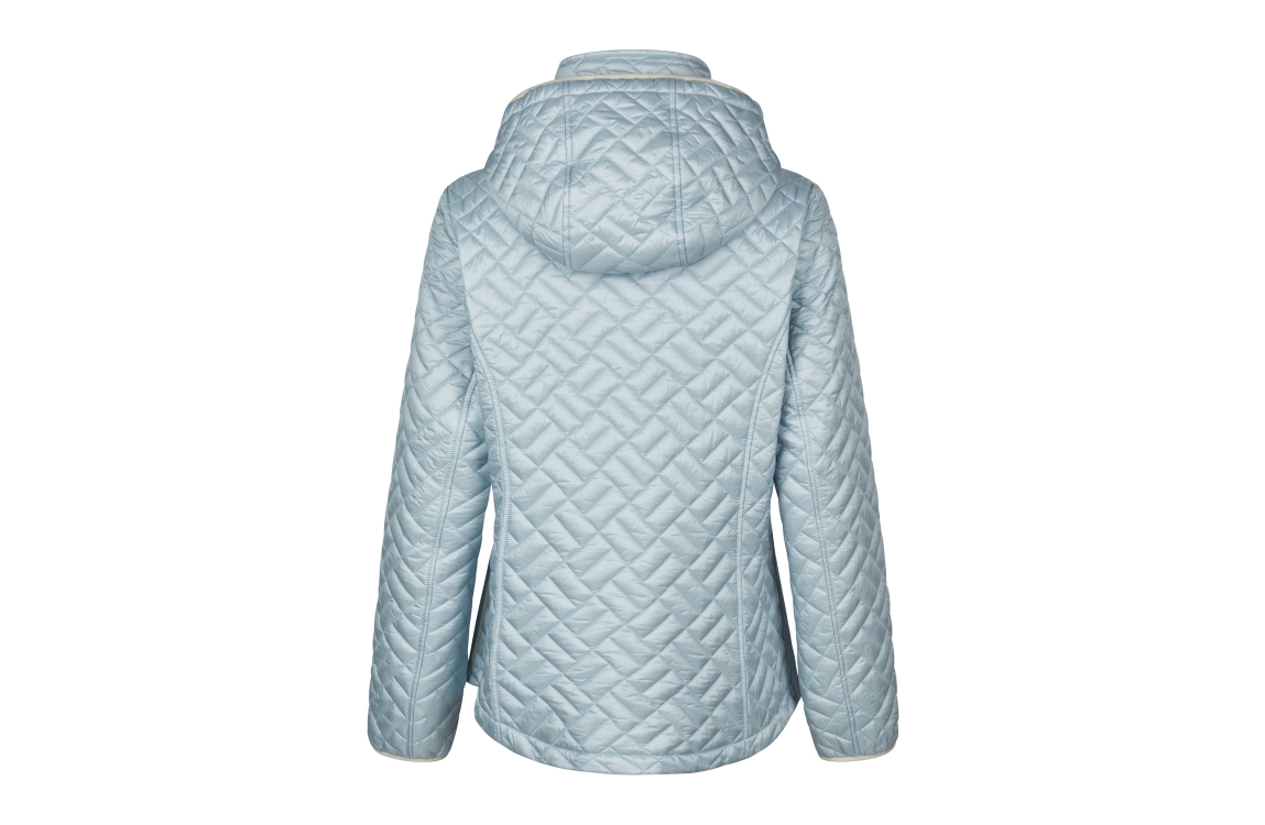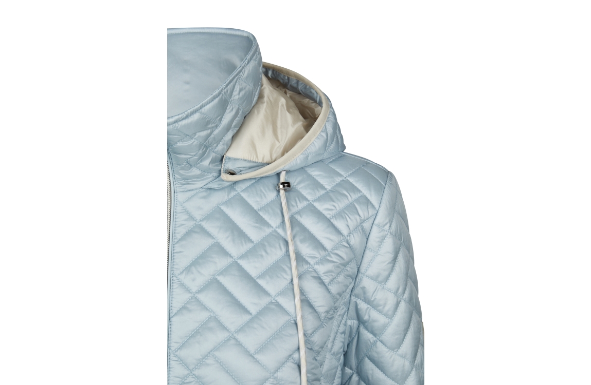 Barbera Lebek tussenjas 50480062. Dit aangesloten model heeft een afneembare capuchon, lange mouwen en sluit door middel van een rits. Deze blauwe tussenjas van Barbera Lebek is gemaakt van een gewatteerd materiaal en voorzien van ritszakken en trekkoorden.