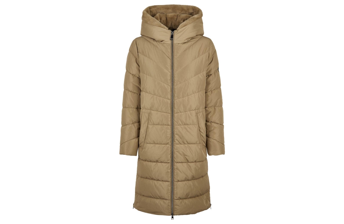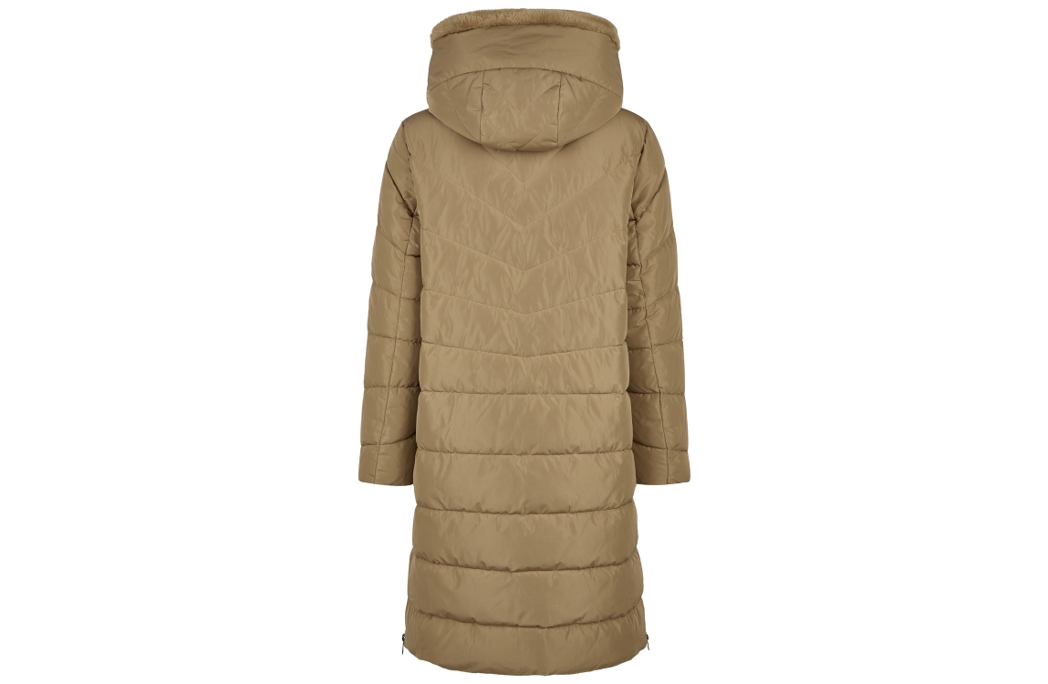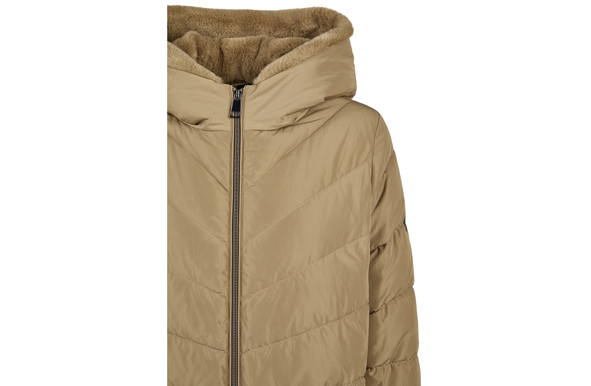 Lebek Mantel mit Webpelz 626 Moss. Dit rechtvallende model heeft een capuchon, lange mouwen en sluit door middel van een rits. Deze bruine winterjas van Lebek beschikt over twee steekzakken aan de voorzijde.