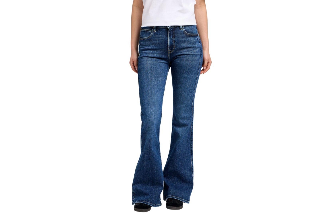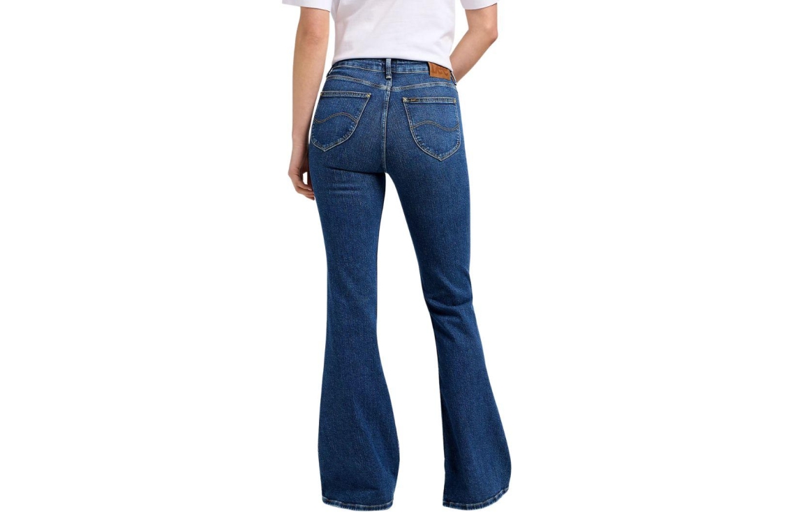 Lee broek Breese rain falls 112354456. Dit flared skinny model sluit door middel van een knoop- en ritssluiting en is voorzien van ceintuurlussen. Deze denim broek van Lee beschikt over twee steekzakken met een muntenzakje aan de voorzijde en twee steekzakken aan de achterzijde. Het model is afgewerkt met een diepe inktblauwe wassing.
