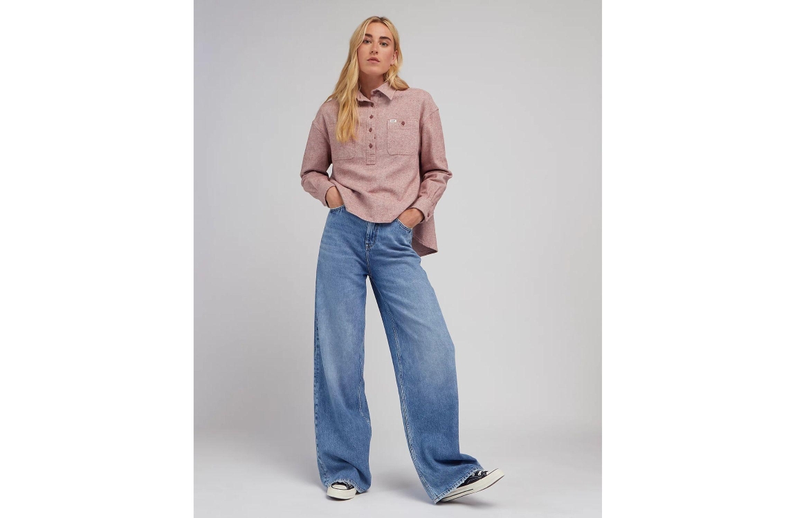 Lee Stella take the hint Take the hint. Dit wide leg model sluit door middel van een knoop- en ritssluiting en is voorzien van ceintuurlussen. Deze denim broek van Lee beschikt over twee steekzakken met een muntenzakje aan de voorzijde en twee steekzakken aan de achterzijde.