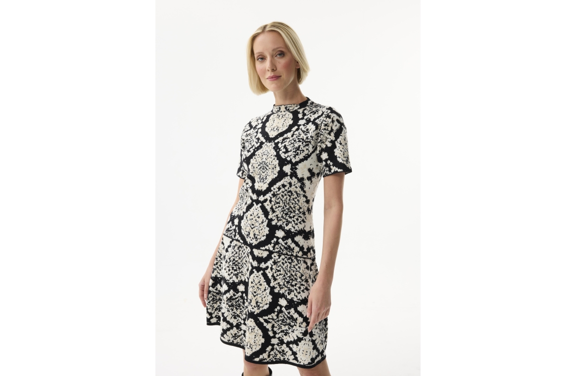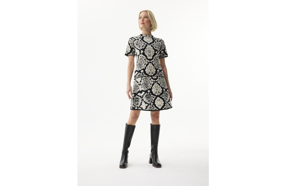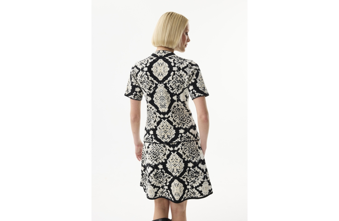Leo en Ugo Rok KHJ976. Dit a-lijn model sluit aan de bovenzijde door middel van een elastische boord. Deze zwart/witte rok van Leo & Ugo is bewerkt met een slangenprint en afgewerkt met glitter details.