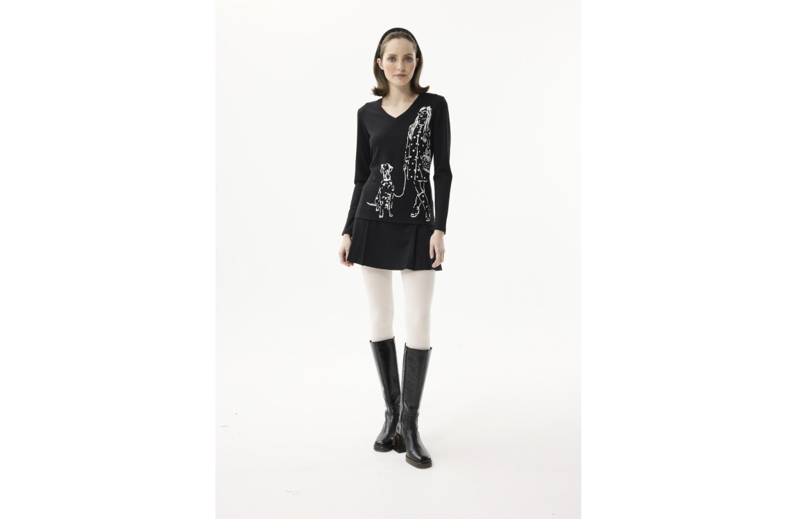 Leo en Ugo Longsleeve TWJ873. Dit rechtvallende model is voorzien van een V-hals en lange mouwen. Deze zwarte longsleeve van Leo en Ugo is bewerkt met een opdruk aan de voorzijde en is afgewerkt met strass-steentjes.