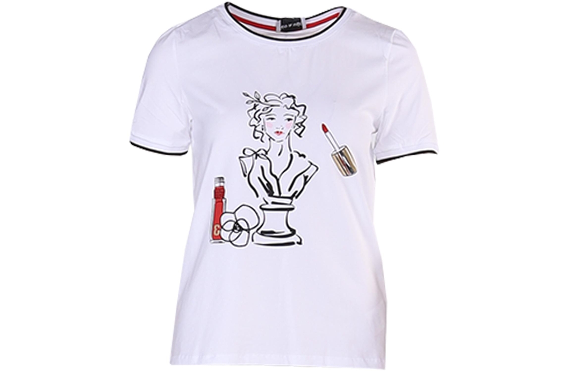 Leo en Ugo T-shirt L61-TEJ966. Dit rechtvallende model heeft een ronde halslijn en korte mouwen, gedetailleerd met een zwarte streep. Deze witte T-shirt van Leo en Ugo is op het voorpand bewerkt met een opdruk in verschillende kleuren en is uitgevoerd in stretchkwaliteit.