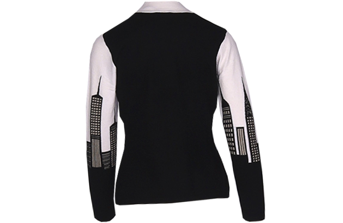 Leo en Ugo Top Multicolour. Dit rechtvallende model heeft een col, lange mouwen en is afgewerkt met elastische boorden aan de onderzijde. Deze witte top van Leo en Ugo is aan de voorzijde bewerkt met een opdruk in het zwart met beige/lurex.