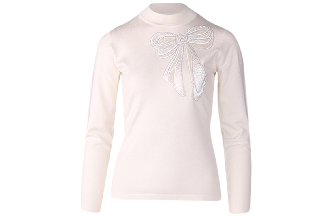 Leo & Ugo top AW100. Dit rechtvallend model is voorzien van een hoge ronde hals en heeft lange mouwen. Deze witte top van Leo & Ugo is bewerkt met een strik aan de voorzijde afgewerkt met zilveren lurex.