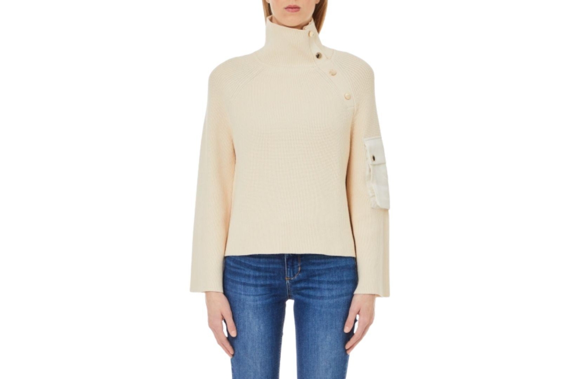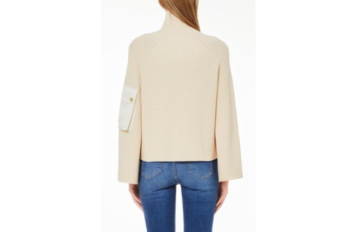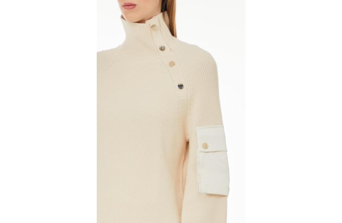 Liu Jo trui wf4475ms99e20304. Dit rechtvallend model is voorzien van een col en heeft lange mouwen. Deze beige geribde trui van Liu Jo is aan de bovenzijde bewerkt met goudkleurige knopen en beschikt aan de linkerarm over een klepzak.