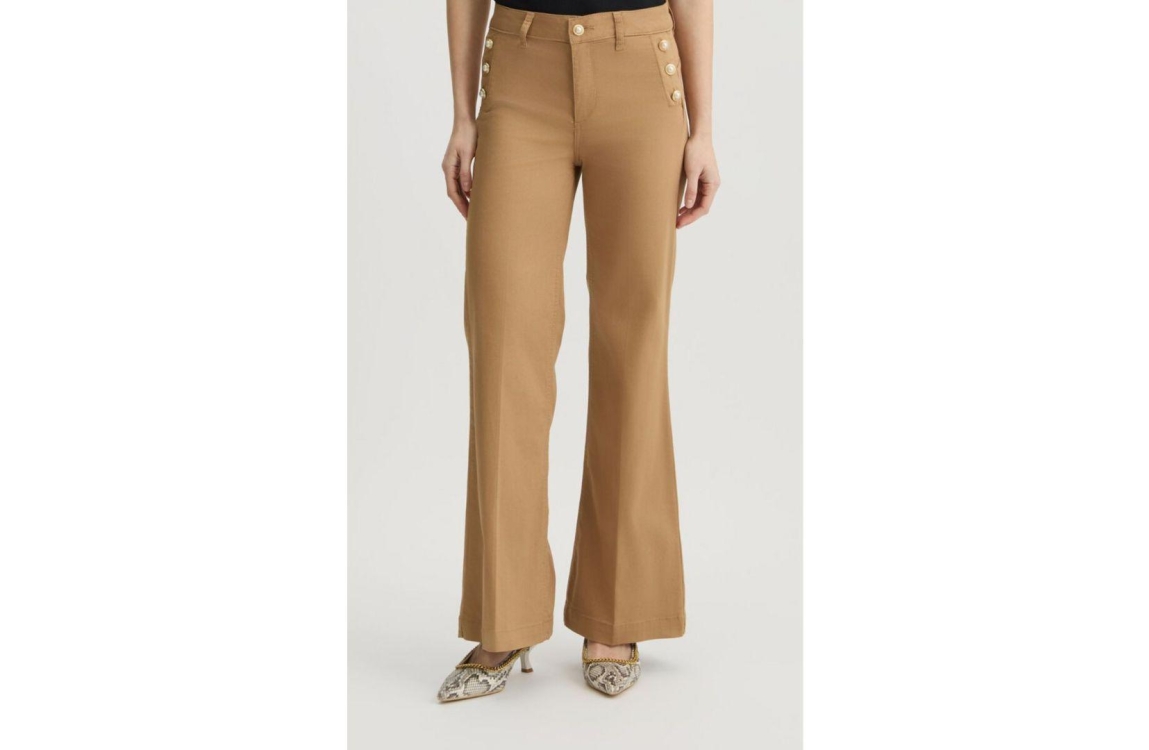 Liu Jo broek WA5459t403371320. Dit flared model sluit door middel van een knoop en rits afgewerkt met ceintuurlussen. Deze bruine broek van Liu Jo is voorzien van steekzakken en is aan de voorzijde bewerkt met parel knoopdetails.