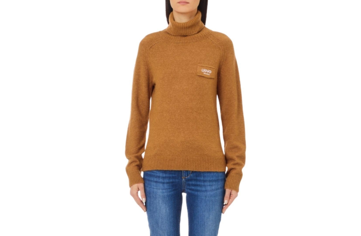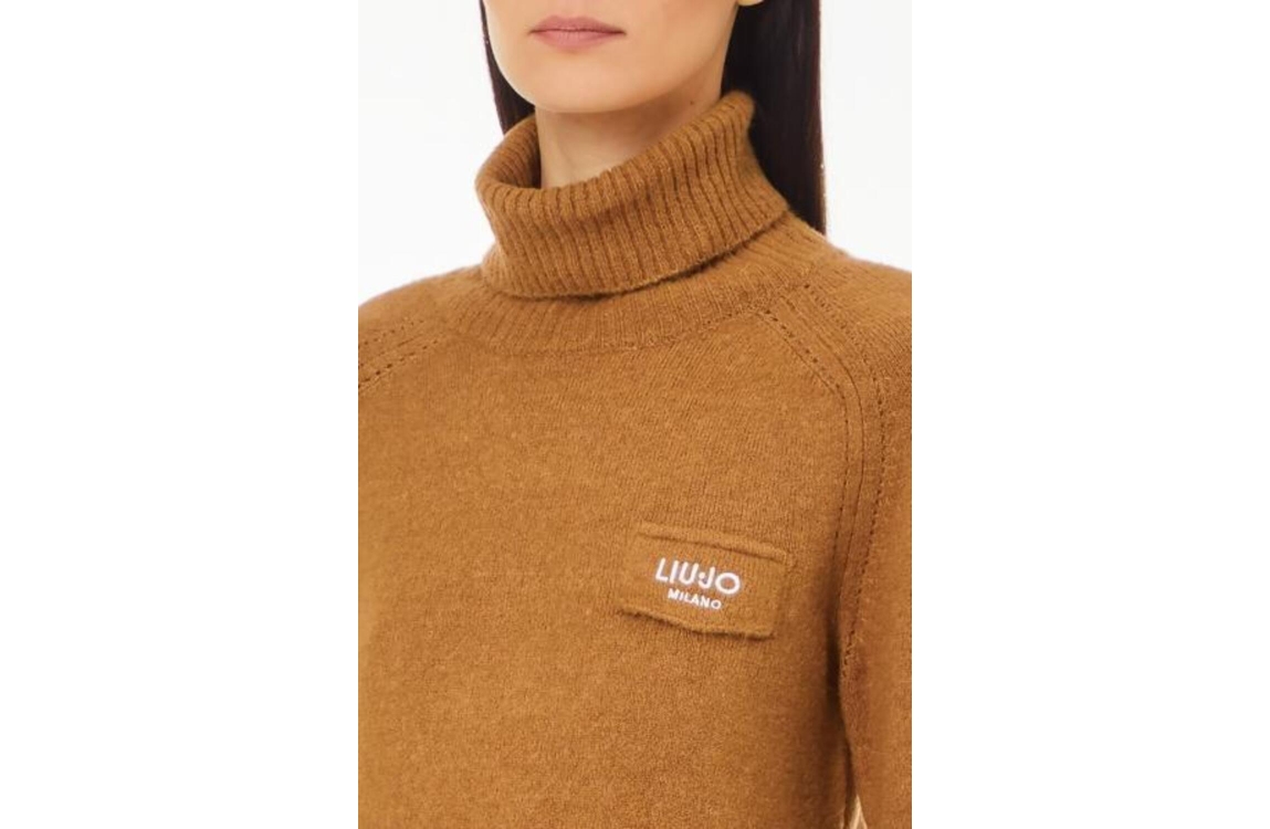 Liu Jo trui WF4363MA49P81029. Dit rechtvallend model heeft een col en lange mouwen. Deze bruine trui van Liu Jo is bewerkt met het logo aan de voorzijde en is afgewerkt met ribgebreide boorden.