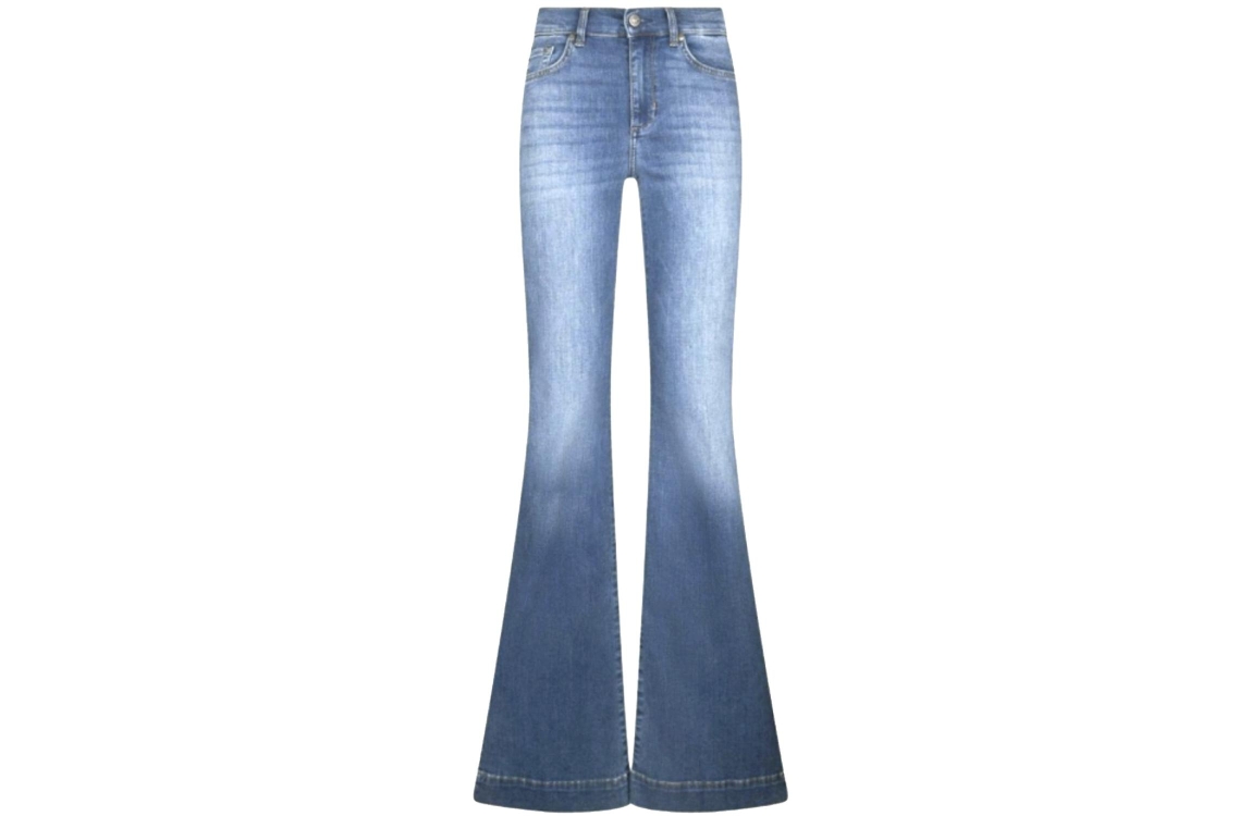 Liu Jo jeans UA6068DS081 79029. Dit flared fit model sluit door middel van een knoop- en ritssluiting en is voorzien van ceintuurlussen. Deze lichte denim jeans van Liu Jo is voorzien van twee steekzakken aan de voor- en achterzijde en heeft een muntzakje. Het model is gedetailleerd met strass-steentjes op de twee achterzakken en is afgewerkt met een bruinkleurige patch.