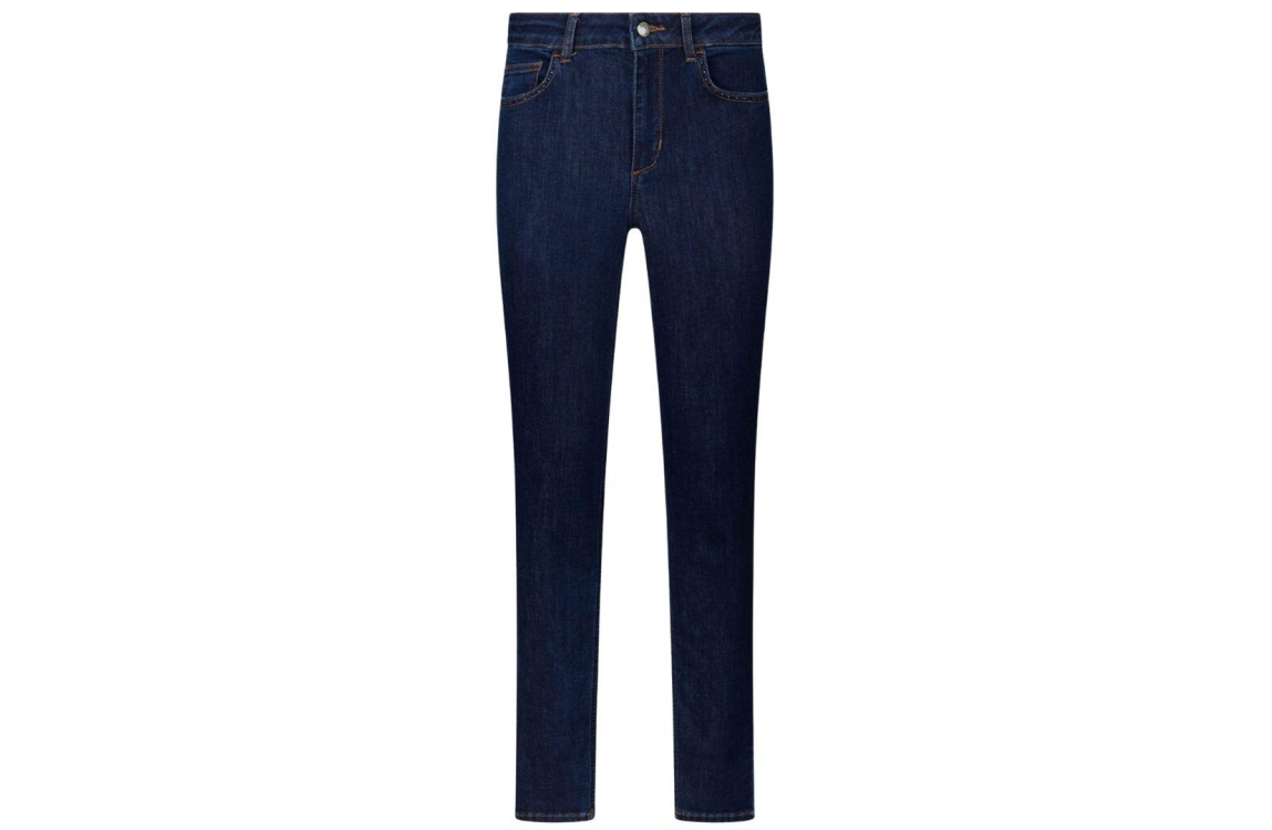 Liu Jo jeans UF5013D0282. Dit skinny fit sluit door middel van een knoop en rits afgewerkt met ceintuurlussen. Deze donkere denim van Liu Jo is uitgevoerd in een 5-pocket model en is bij de zakken aan de voorpand afgewerkt met strass steentjes.