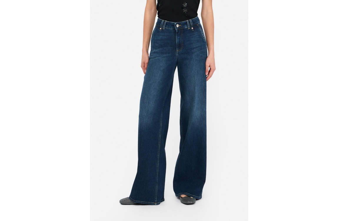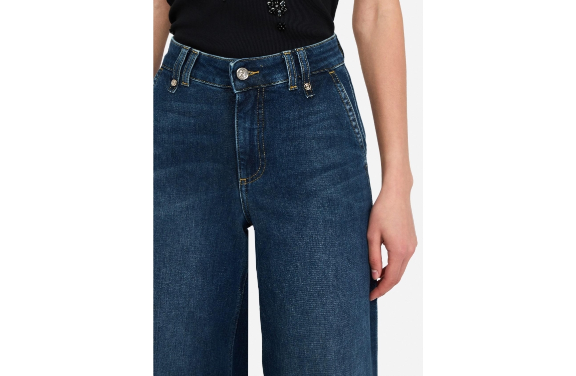 Liu Jo Jeans UF5128D0269. Dit wijdvallend fit model sluit door middel van een knoop en ritsaansluiting en heeft ceintuurlussen. Deze Jeans van Liu Jo beschikt over twee steekzakken aan de voorzijde en twee paspelzakken aan de achterzijde.