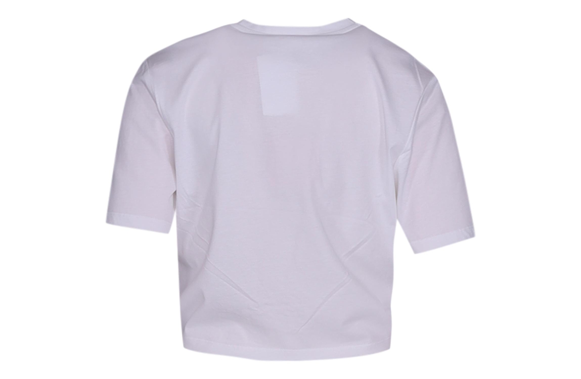 Liu Jo top Bianco wa5139js923m9512. Dit cropped model is voorzien van een ronde hals en heeft korte mouwen. Deze witte top van Liu Jo is aan de voorzijde bewerkt met het logo afgewerkt met initialen en beschikt aan de onderzijde van een knoopdetail met initialen.