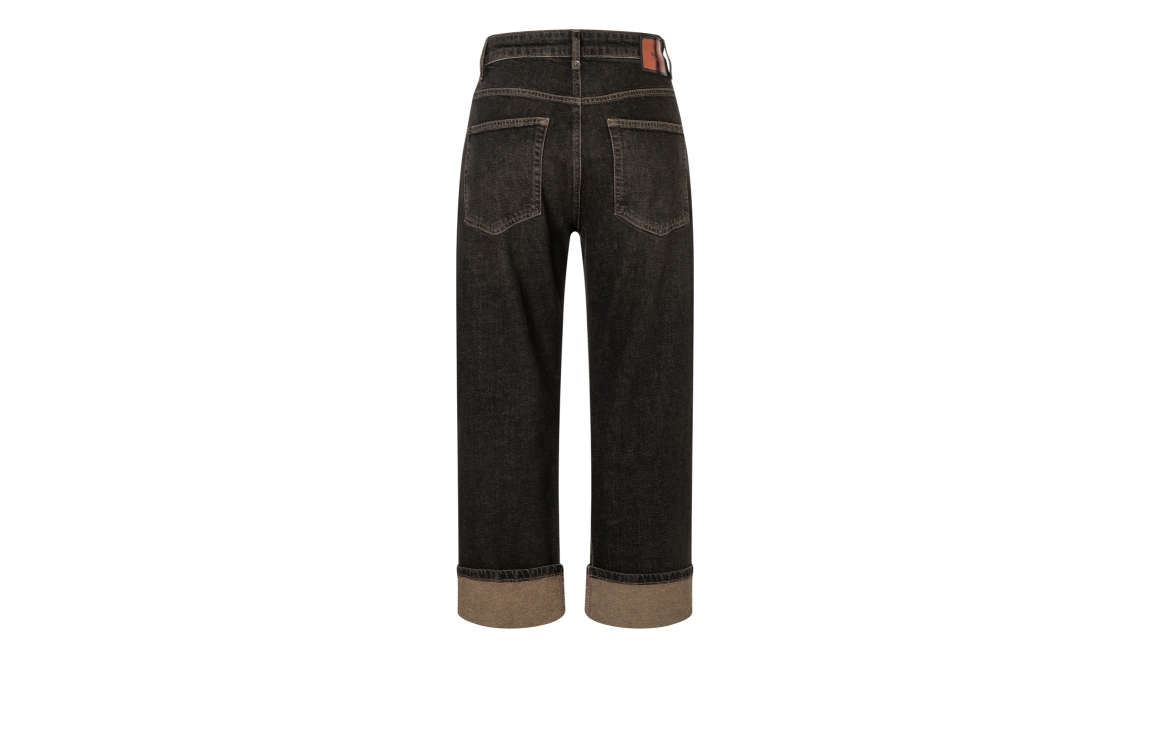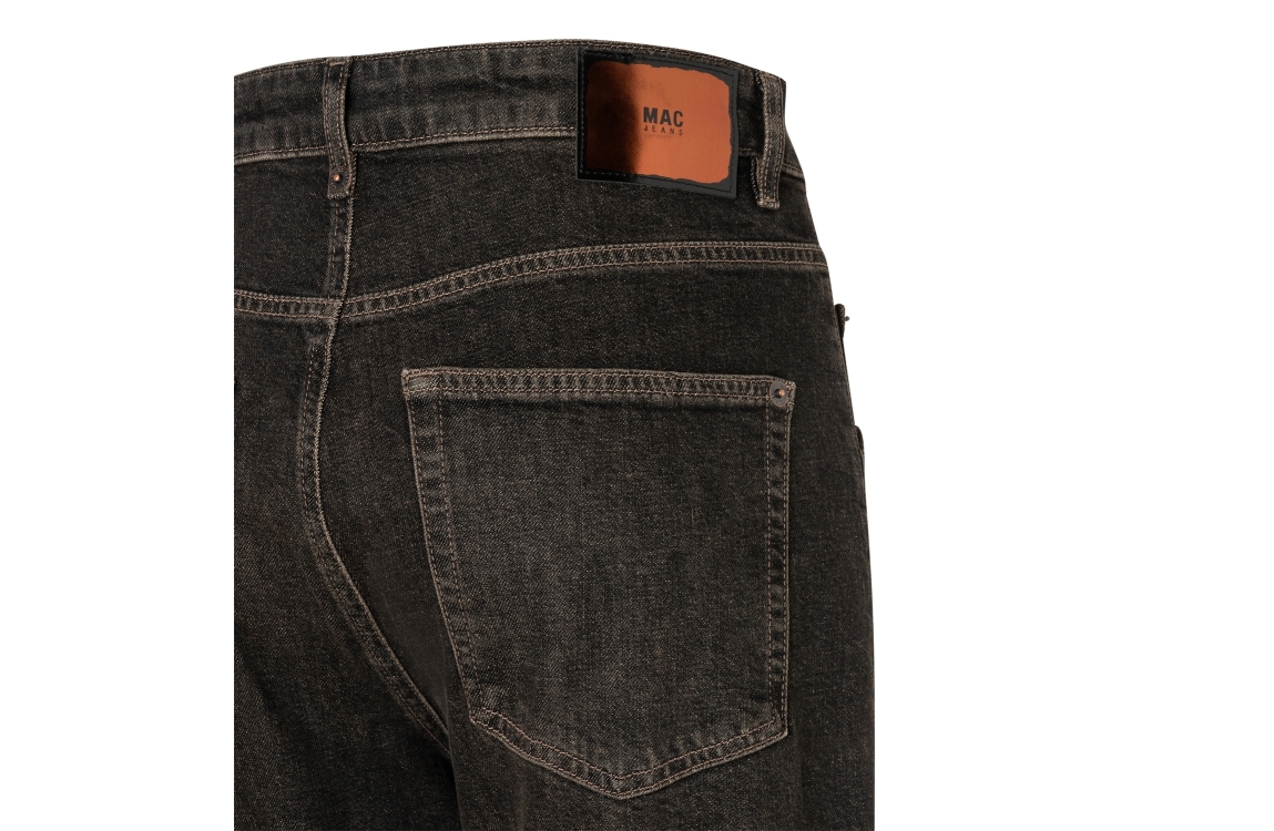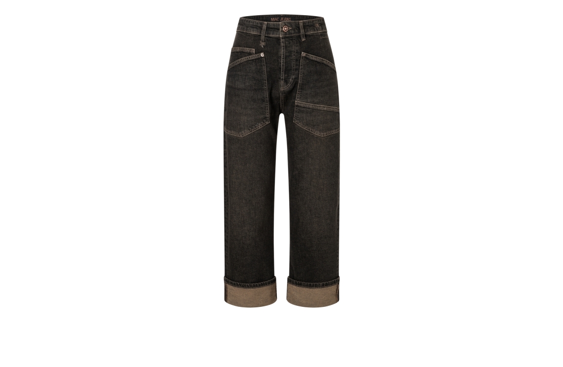 Mac broek Bggy 0361232190. Dit 7/8 baggy model sluit door middel van een knoop- en ritssluiting en is voorzien van ceintuurlussen. Deze donkere denim broek van Mac beschikt over vier grote steekzakken en een muntzakje.