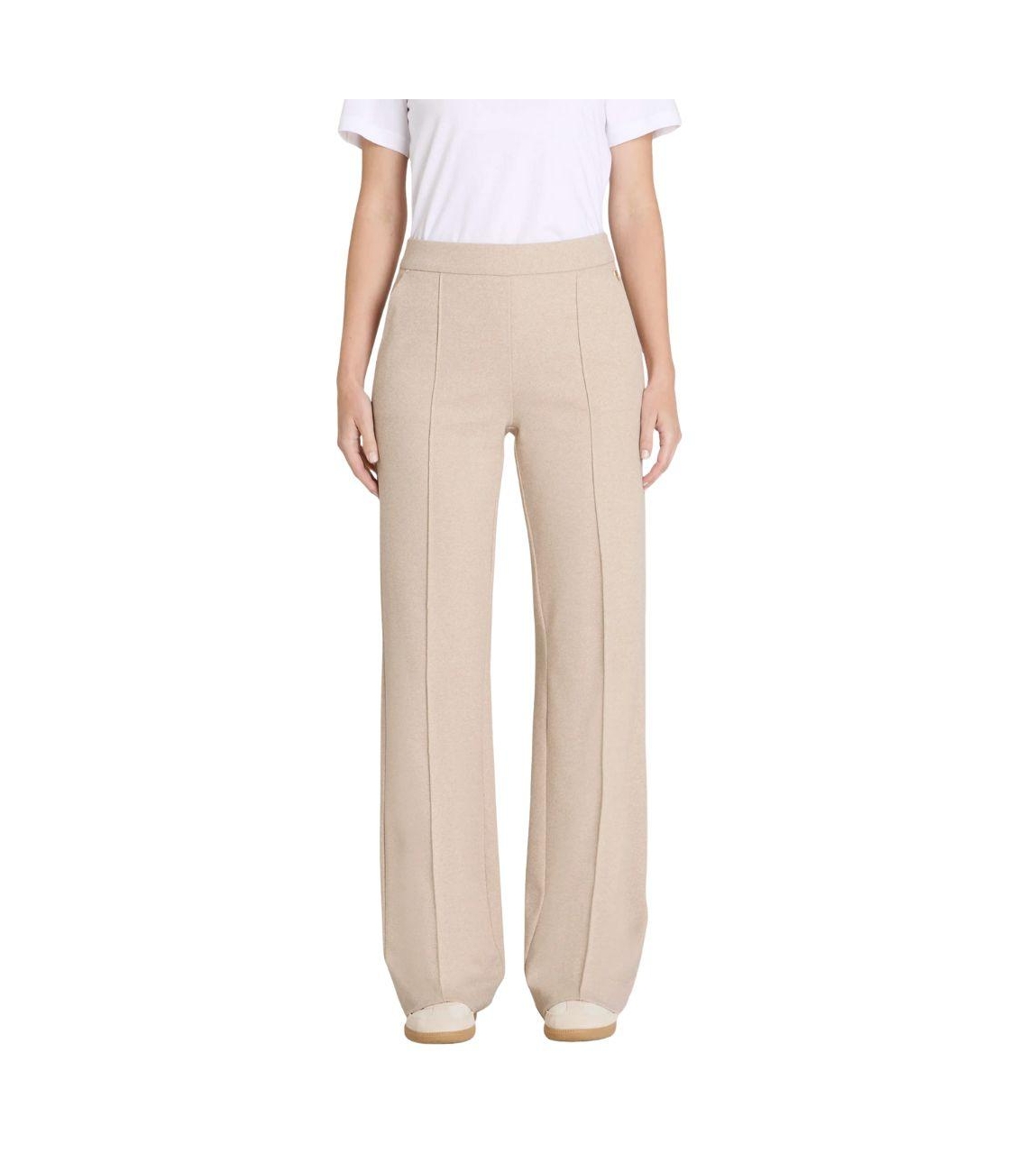 MAC broek Chiara Smart 0114302900. Dit wide leg model sluit door middel van een elastische boord en beschikt over twee steekzakken aan de voorzijde en twee paspelzakken aan de achterzijde. Deze beige broek van MAC beschikt over een verticale naad over de benen.