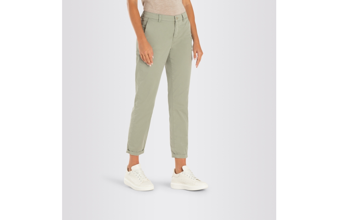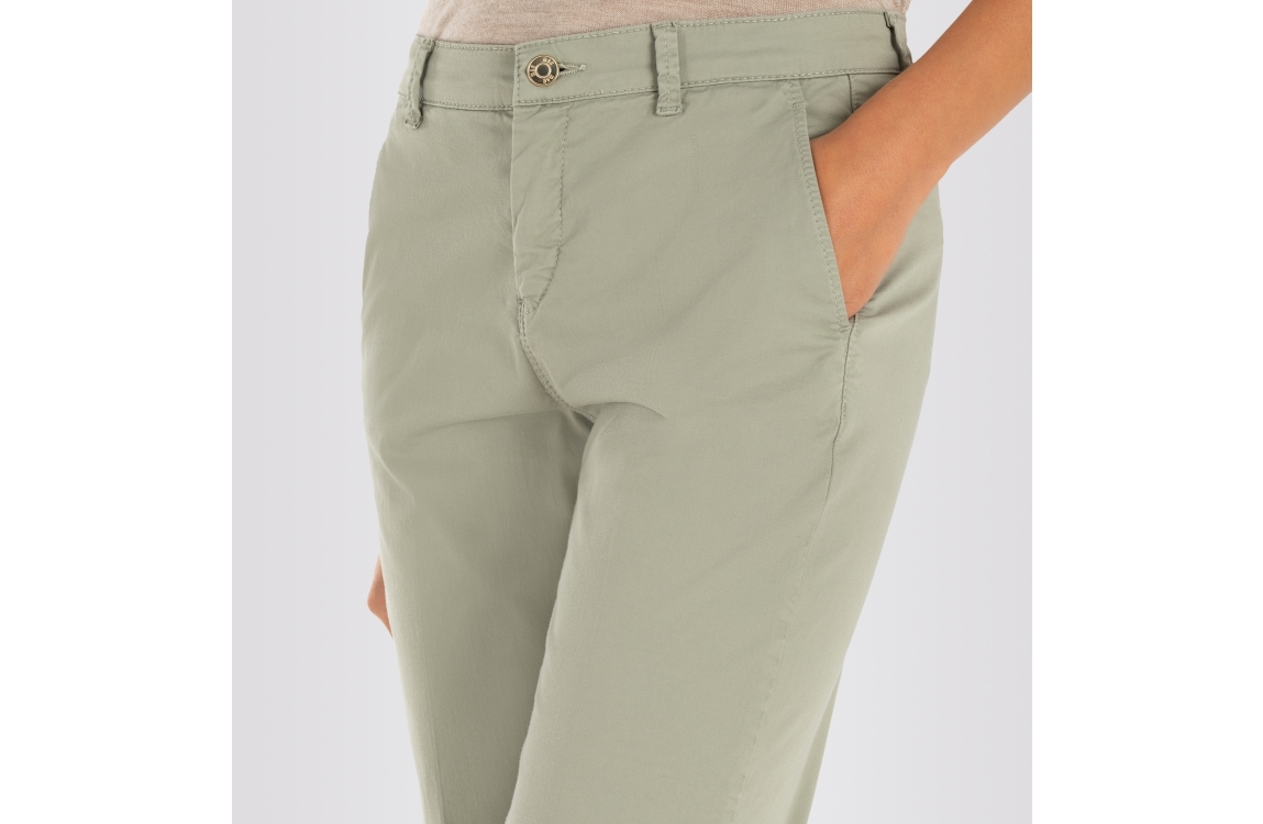MAC broek Chino 0434L307500. Dit slim fit model sluit door middel van een knoop- en ritssluiting en is voorzien van ceintuurlussen. Deze groene broek van MAC beschikt over twee steekzakken aan de voorzijde en twee paspelzakken aan de achterzijde. Het model is uitgevoerd met lichte stretchkwaliteit en heeft een smal toelopende broekspijp.