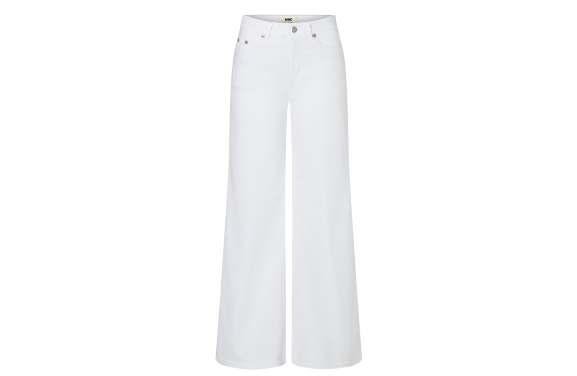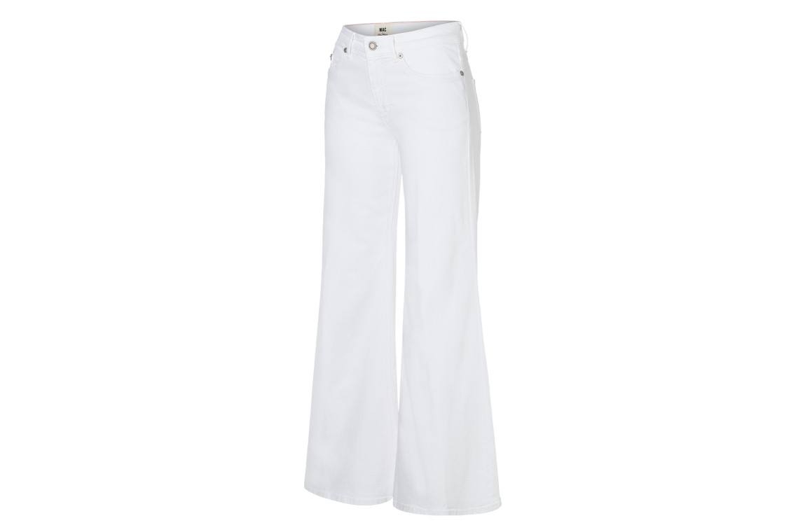 MAC WIDE D010 denim jeans 0333523990. Dit wide fit model sluit door middel van een knoop en een rits. Deze witte jeans van Mac beschikt over verschillende broekzakken, riemlusjes en is uitgevoerd in stretch kwaliteit.