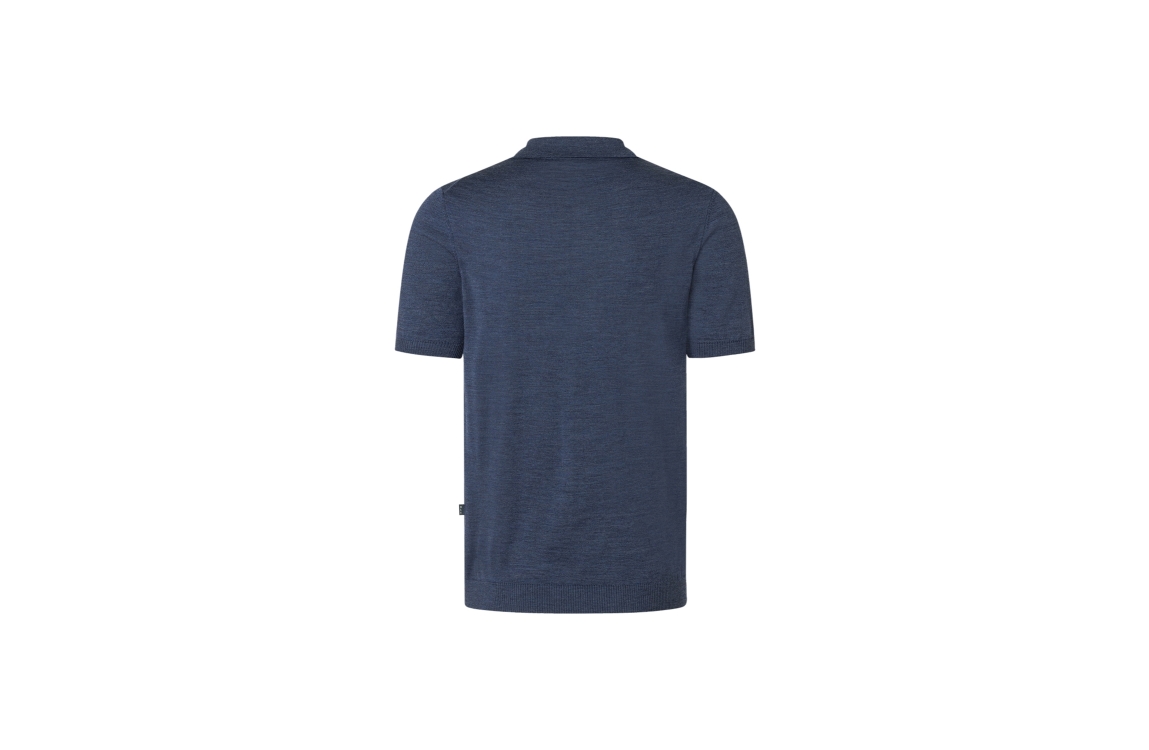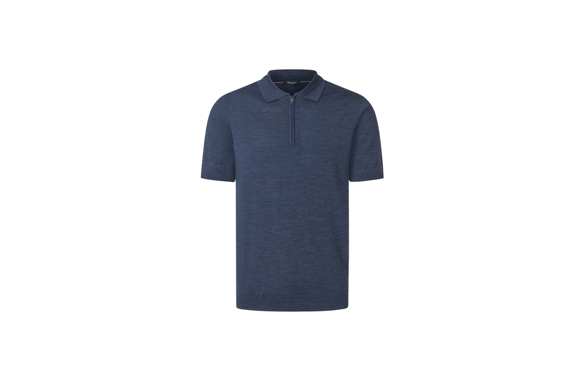 Maerz polo pullover 406400. Dit rechtvallend model is voorzien van een kraag en heeft korte mouwen. Deze donkerblauwe polo pullover van Maerz sluit aan de bovenzijde door middel van een rits.