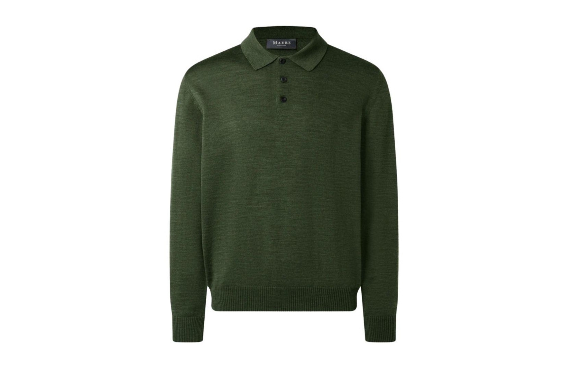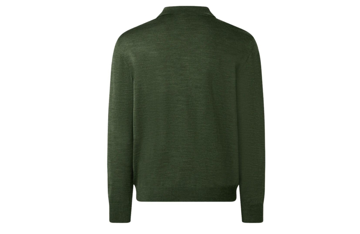 Maerz Pullover Polokragen Knopf 1/1 Arm 275 groen. Dit rechtvallende model heeft een kraag die sluit door knopen en heeft lange mouwen. Deze groene pullover van Maerz is afgewerkt met boorden.