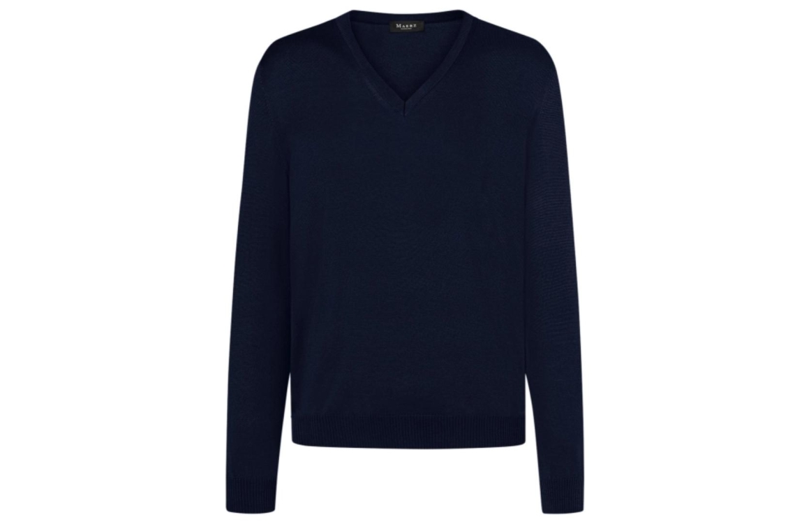 Maerz pullover 490400. Dit rechtvallend model is voorzien van een v-hals en heeft lange mouwen. Deze olijfgroene pullover van Maerz is fijngebreid uitgevoerd en is afgewerkt met ribboorden. Dit model is bewerkt met een merkembleem op de rechterarm.