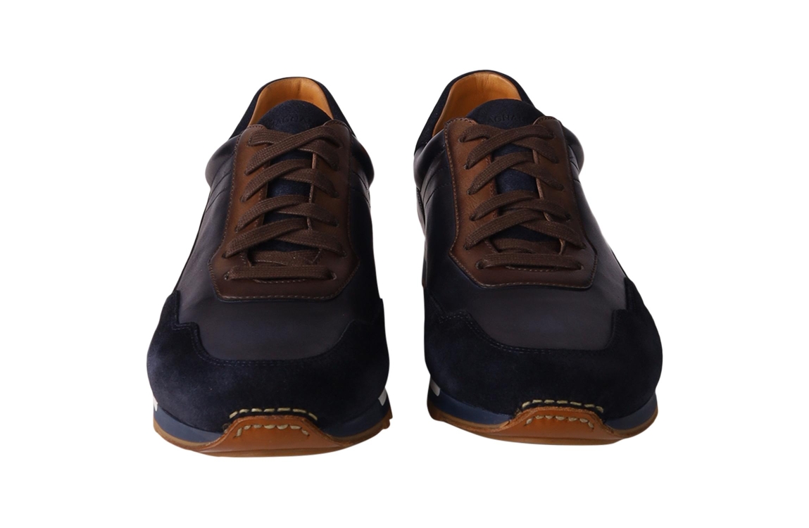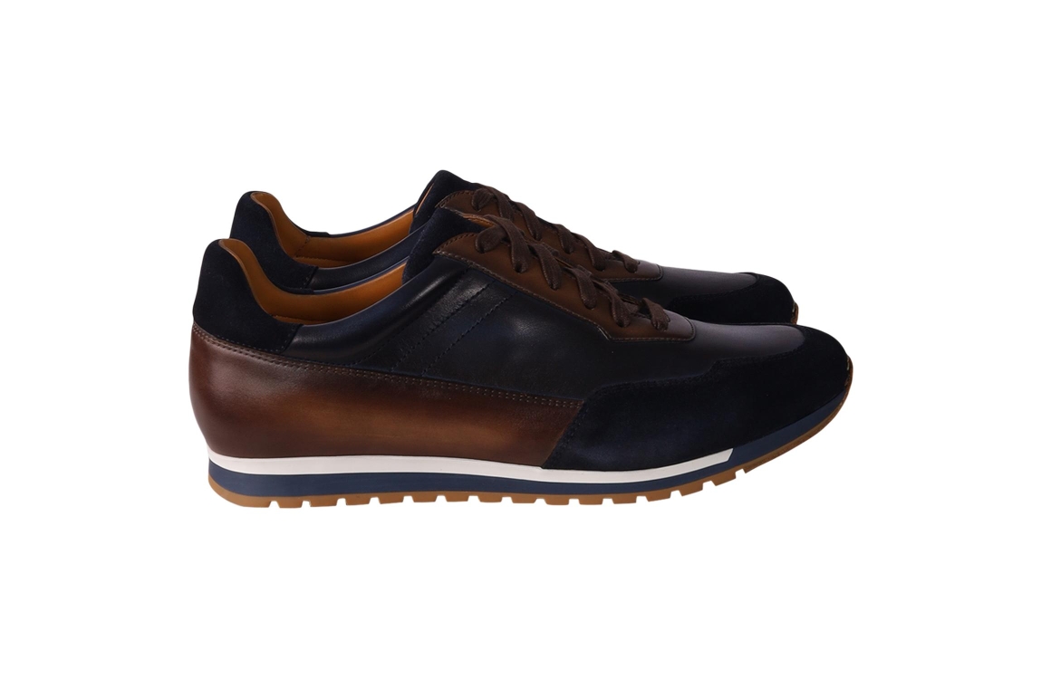 Magnanni sneakers Crostidifu Azul Navy. Deze donkerblauwe sneakers van Magnanni sluiten door middel van veters en zijn bewerkt met bruine en donkerblauwe details.
