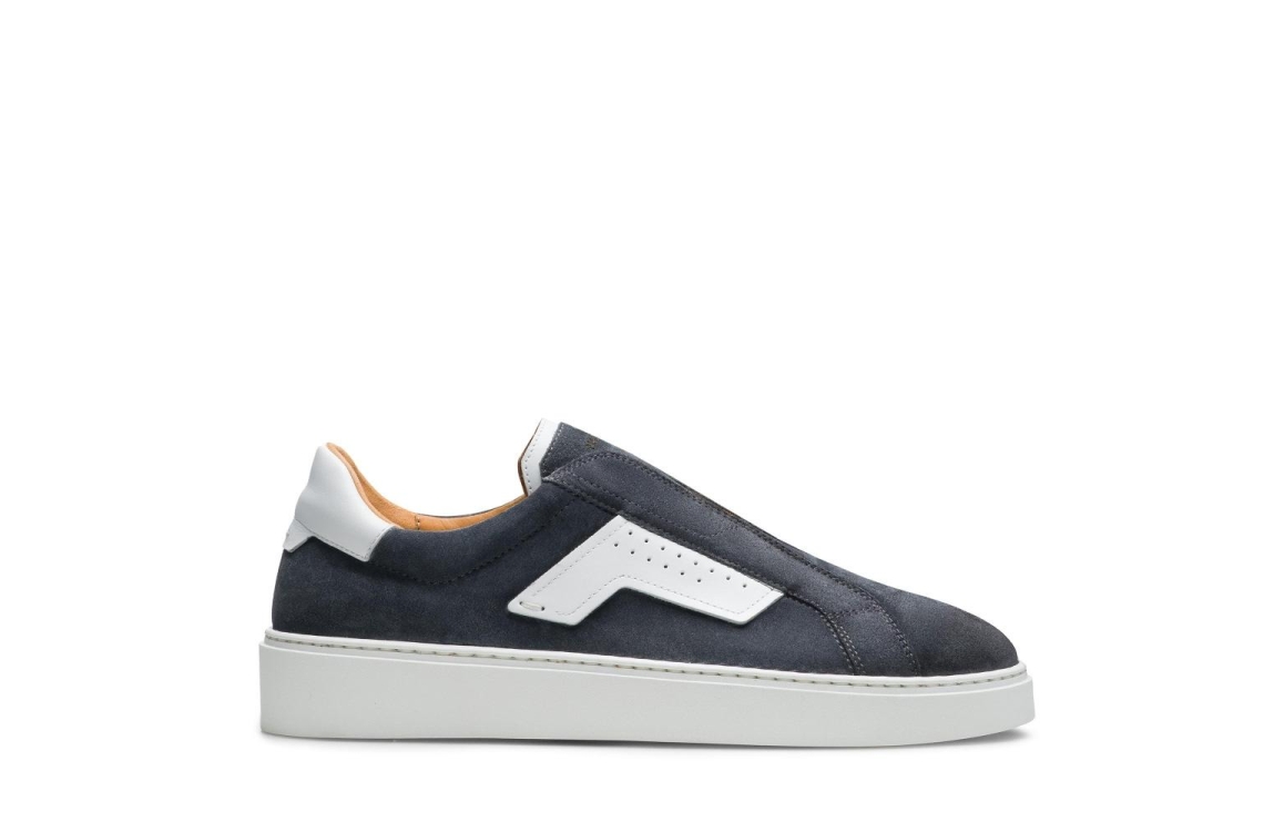 Magnanni schoenen 25621. Dit donkerblauwe instapper model is uitgevoerd in een suede kwaliteit en beschikt over witte vlakken.
