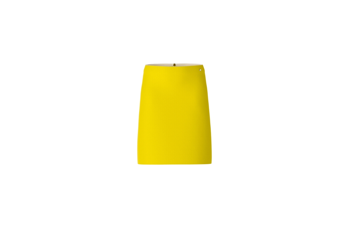 MarcCain Additions rok WA71.01J24. Dit rechtvallende model sluit met een rits en een blinde knoop. Deze gele rok van MarcCain Additions komt ongeveer tot de knie en heeft een onderrok.