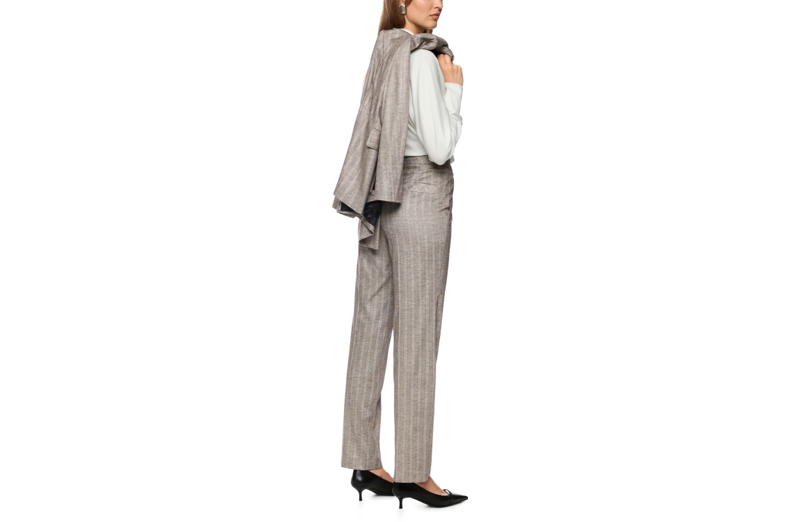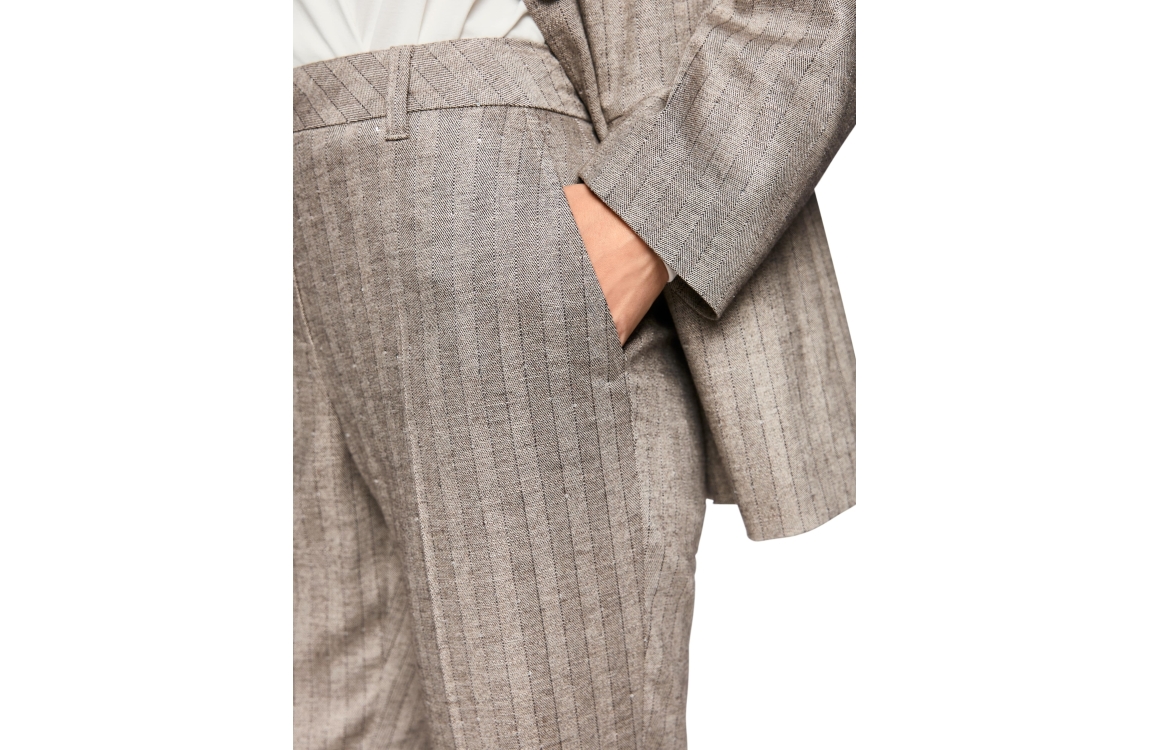 MarcCain Collections FENDOU 836 pantalon ZC 81.25 W73. Dit rechtvallende model sluit door middel van een knoop en rits. Deze grijze pantalon van MarcCain is bewerkt met steekzakken, riemlusjes en strass-steentjes.