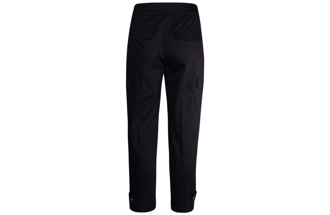 Marc Cain Sports broek WC81.49W35. Dit rechtvallend model sluit door middel van een rits- en knoopsluiting. Deze zwarte cargobroek van Marc Cain beschikt over twee steekzakken en twee cargozakken aan de voorzijde en twee decoratieve klepzakken aan de achterzijde. Dit model is aan de onderzijde afgewerkt met manchetten.