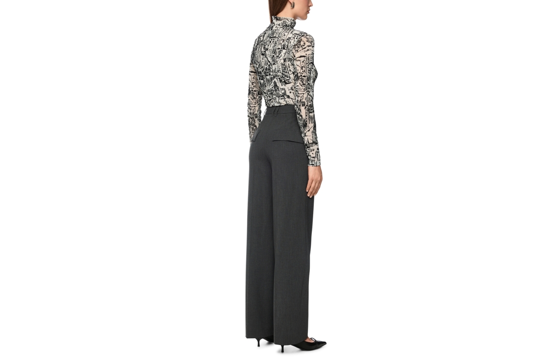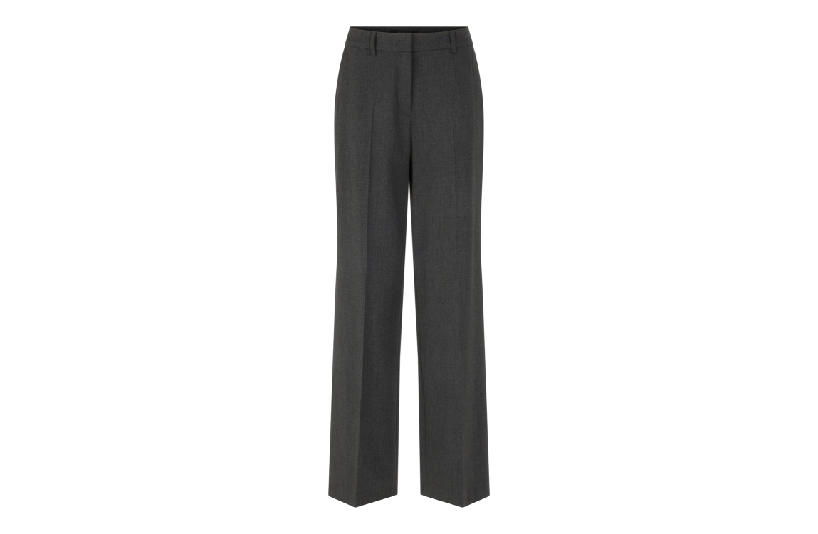MarcCain Collections WUKARI 842 ZC 81.27 W77 pantalon. Dit rechtvallende model sluit door middel van een knoop en rits. Deze grijze pantalon van MarcCain is bewerkt met steekzakken en paspelzakken op de achterzijde.
