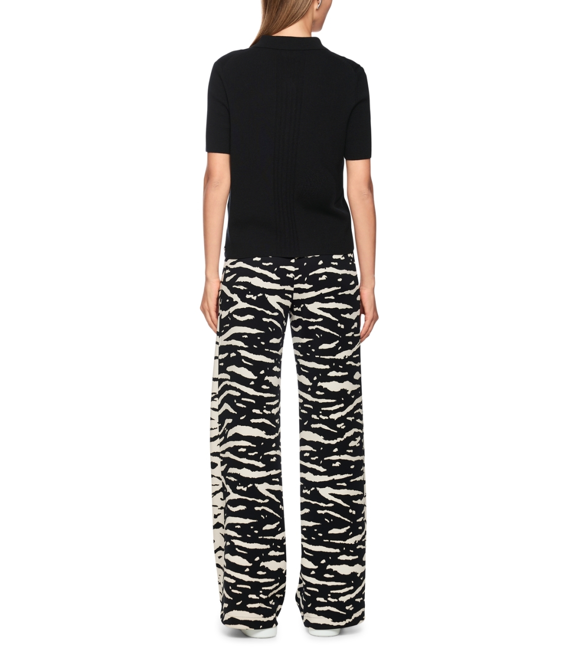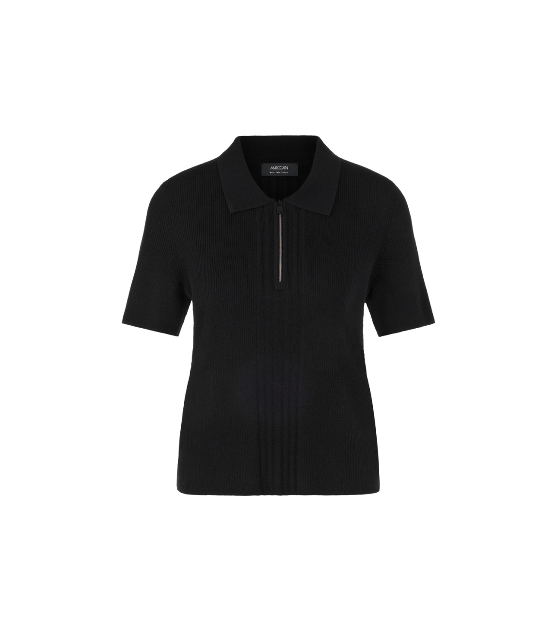 Marc Cain poloshirt AS 53.10 M80. Dit rechtvallende model heeft een kraag en korte mouwen. Deze zwarte poloshirt van Marc Cain is uitgevoerd in ribkwaliteit en lichte stretchkwaliteit.