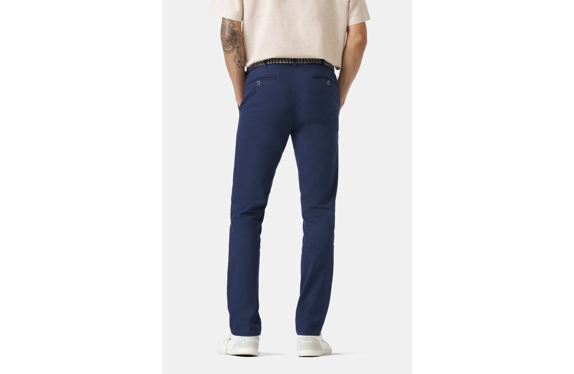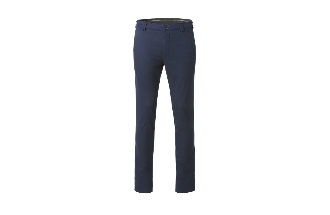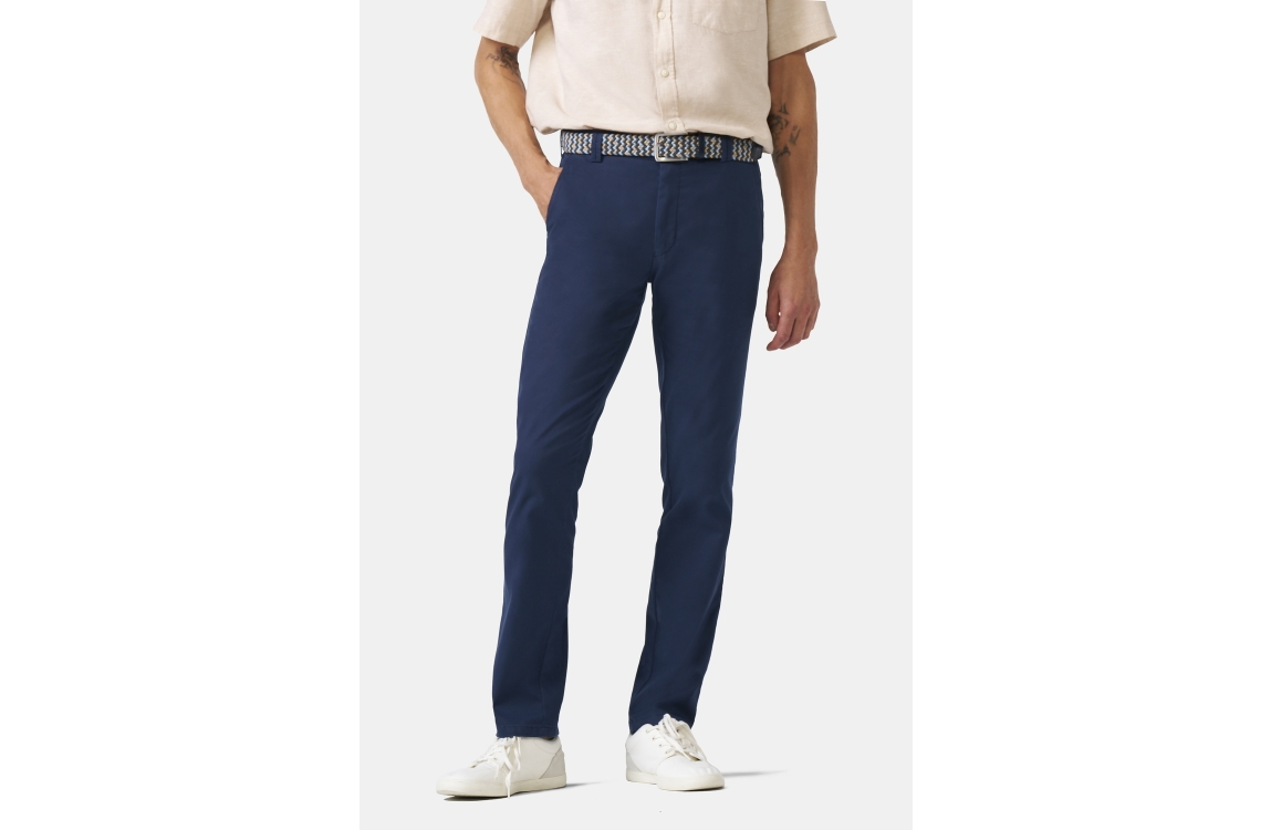 Meyer broek Bonn 1021812100. Dit regular fit model sluit door middel van een knoop met rits, en is voorzien van ceintuurlussen. Deze donkerblauwe broek van Meyer is voorzien van twee steekzakken aan de voorzijde en twee paspelzakken aan de achterzijde.