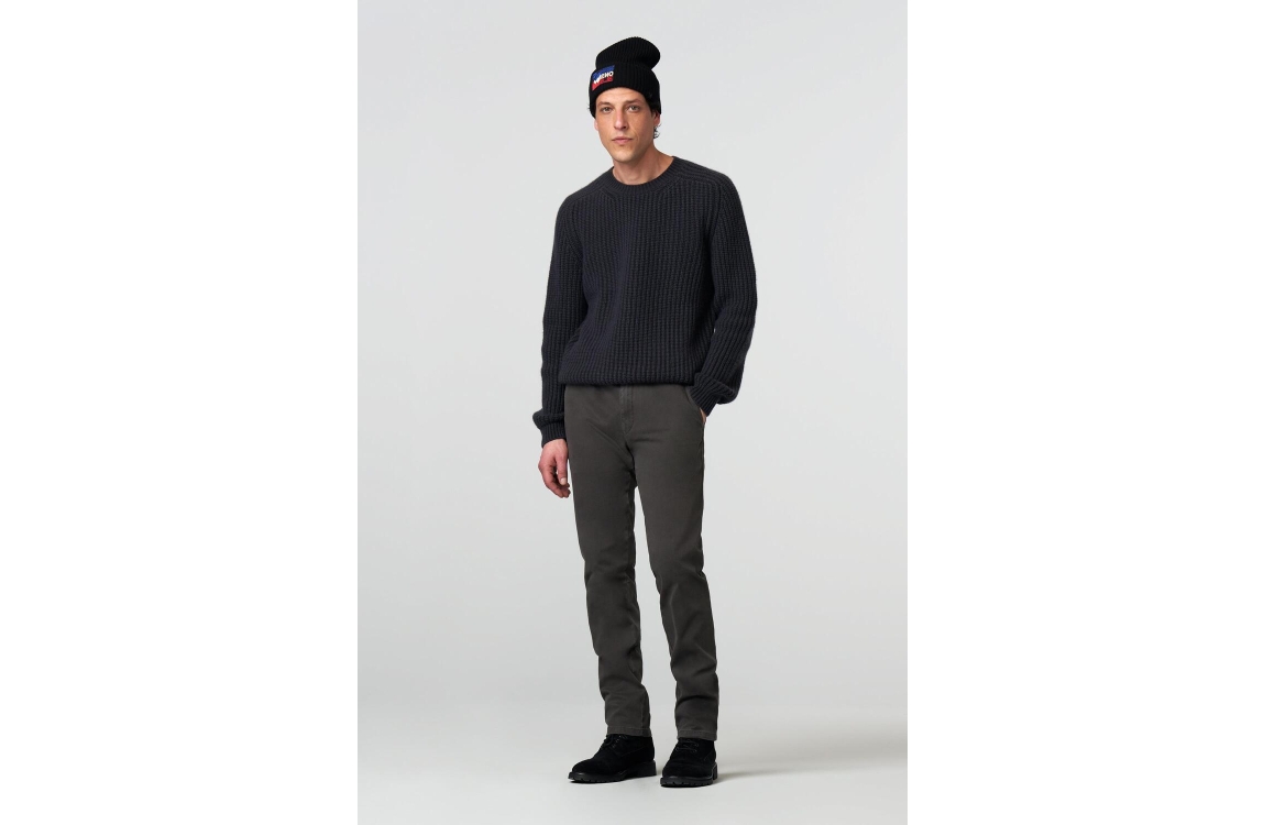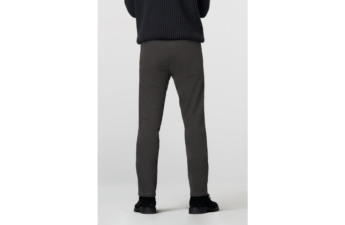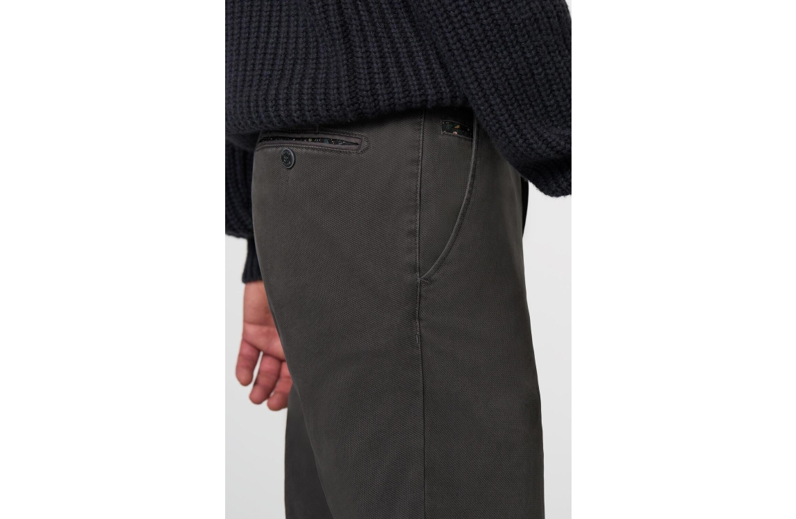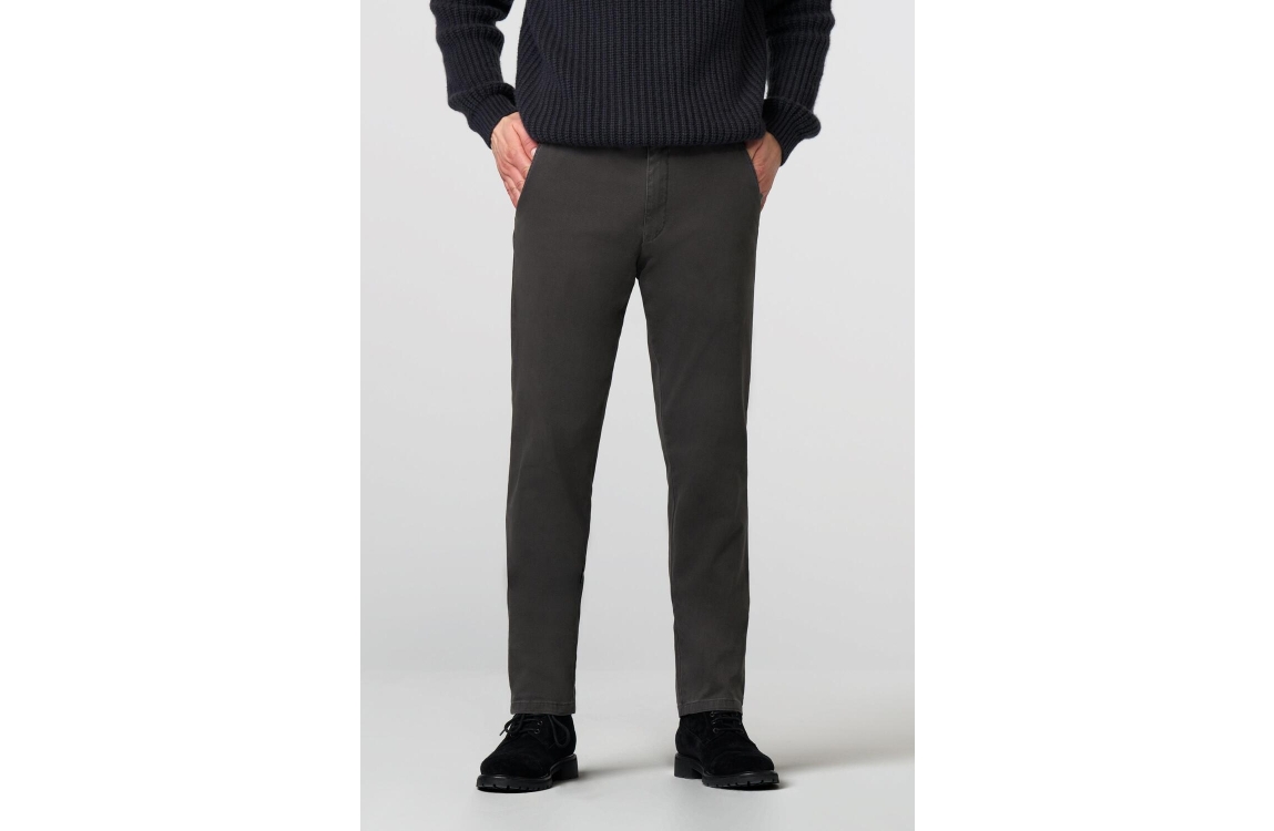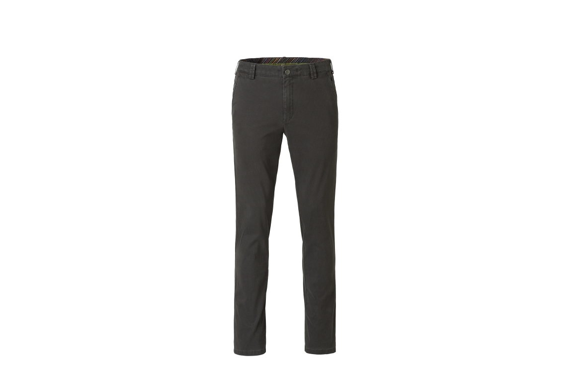 Meyer broek 1022561300. Dit rechtvallend model is voorzien van ceintuurlussen en heeft twee steekzakken en paspelzakken, deze grijze broek van Meyer sluit door middel van rits en haakknoop.