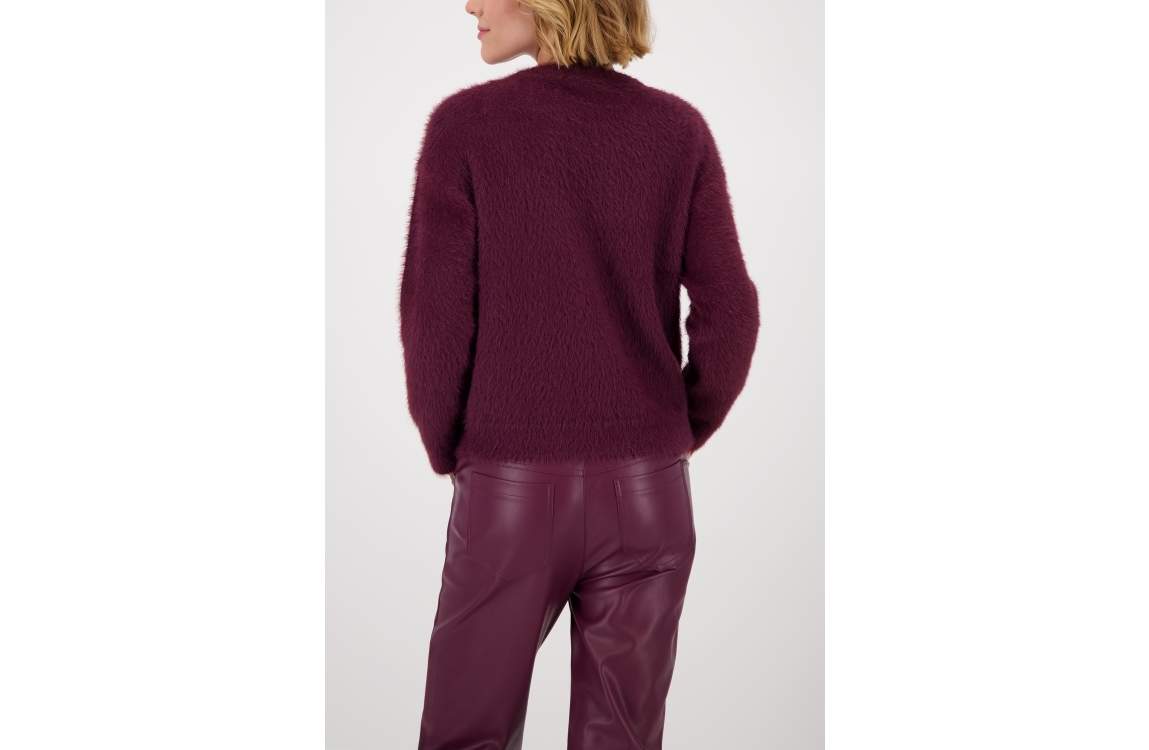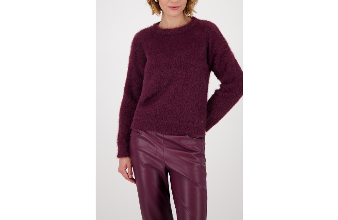 Monari pullover 808957. Dit rechtvallend model is voorzien van een ronde hals en heeft lange mouwen. Deze bordeaux kleurige pullover is uitgevoerd in een zachte kwaliteit.