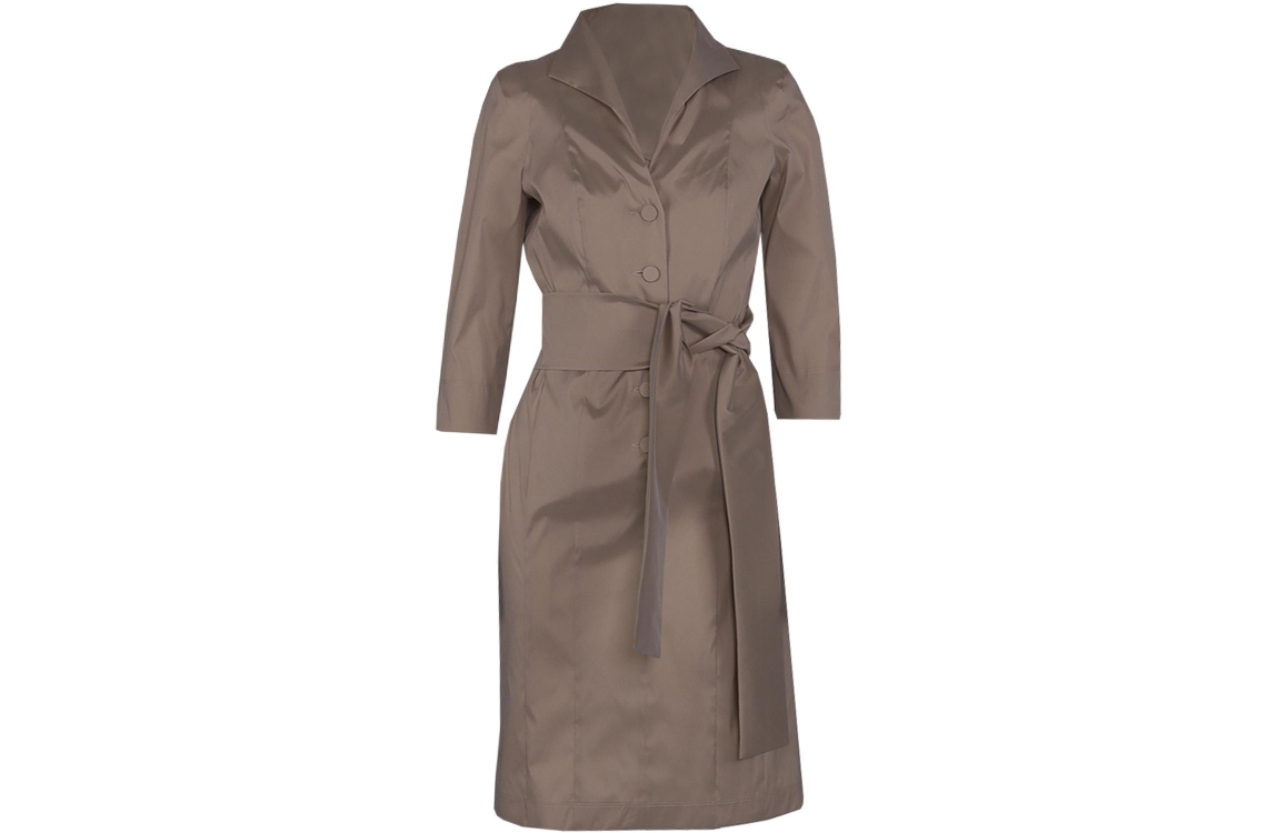 MOQ jurk Sybil2. Dit rechtvallend model is voorzien van een v-hals en heeft driekwart mouwen. Deze zand kleurige jurk van MOQ heeft een opstaande kraag, steekzakken, knoopsluiting voor en een strikceintuur.