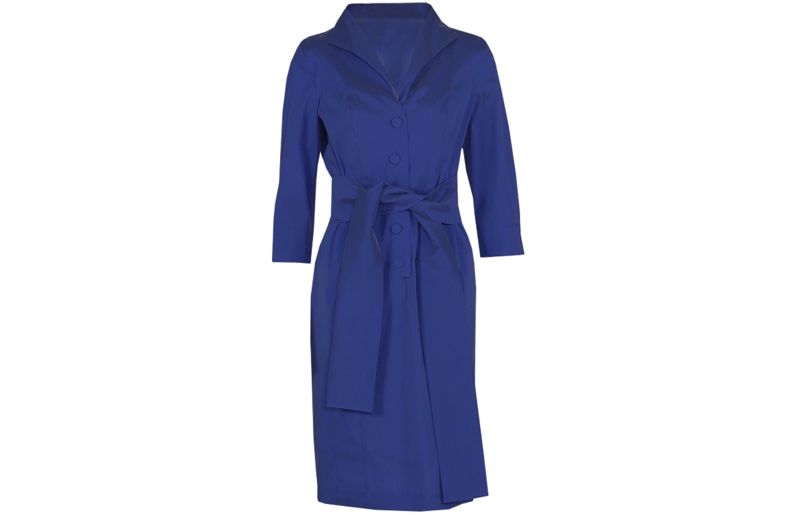 MOQ jurk Sybil2. Dit rechtvallend model is voorzien van een v-hals en heeft driekwart mouwen. Deze lavendel kleurige jurk van MOQ heeft een opstaande kraag, steekzakken, knoopsluiting voor en een strikceintuur.