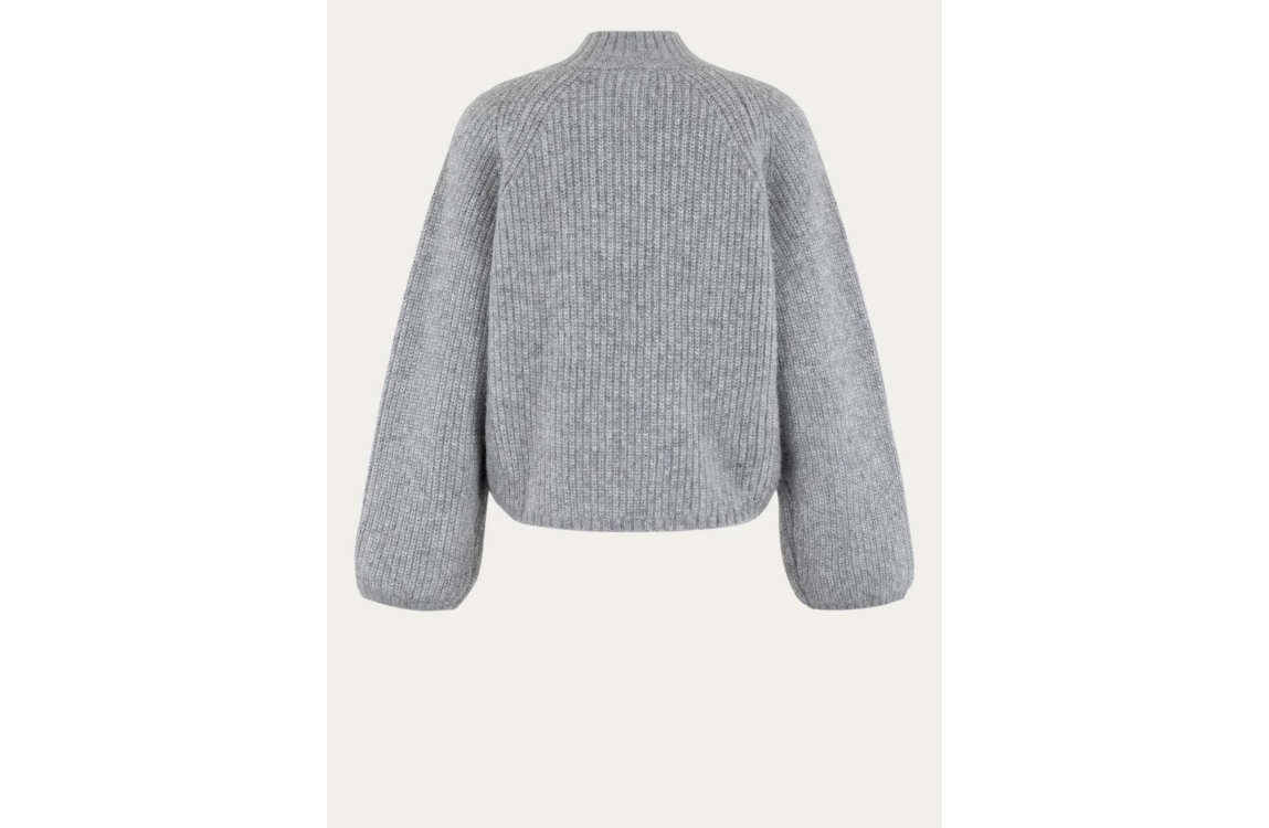Moscow trui 35-09-Fantasy. Dit rechtvallend model is voorzien van een col en heeft lange mouwen. Deze grijze Moscow trui beschikt over een rib stof.
