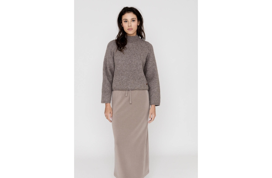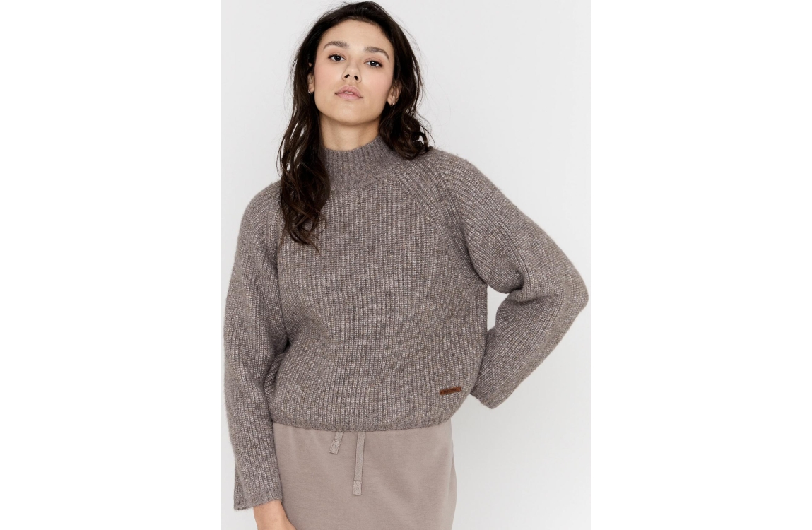 Moscow 35-09-Fantasy trui. Dit rechtvallend model is voorzien van een col en heeft lange mouwen. Deze bruine Moscow trui beschikt over een rib stof.