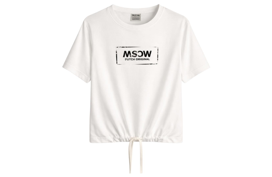 Moscow T-shirt culture 52-04. Dit rechtvallend model is voorzien van een ronde hals en heeft korte mouwen. Deze witte T-shirt van Moscow is bewerkt met zwarte logo opdruk aan de voorzijde en is afgewerkt met trekkoorden aan de onderzijde.