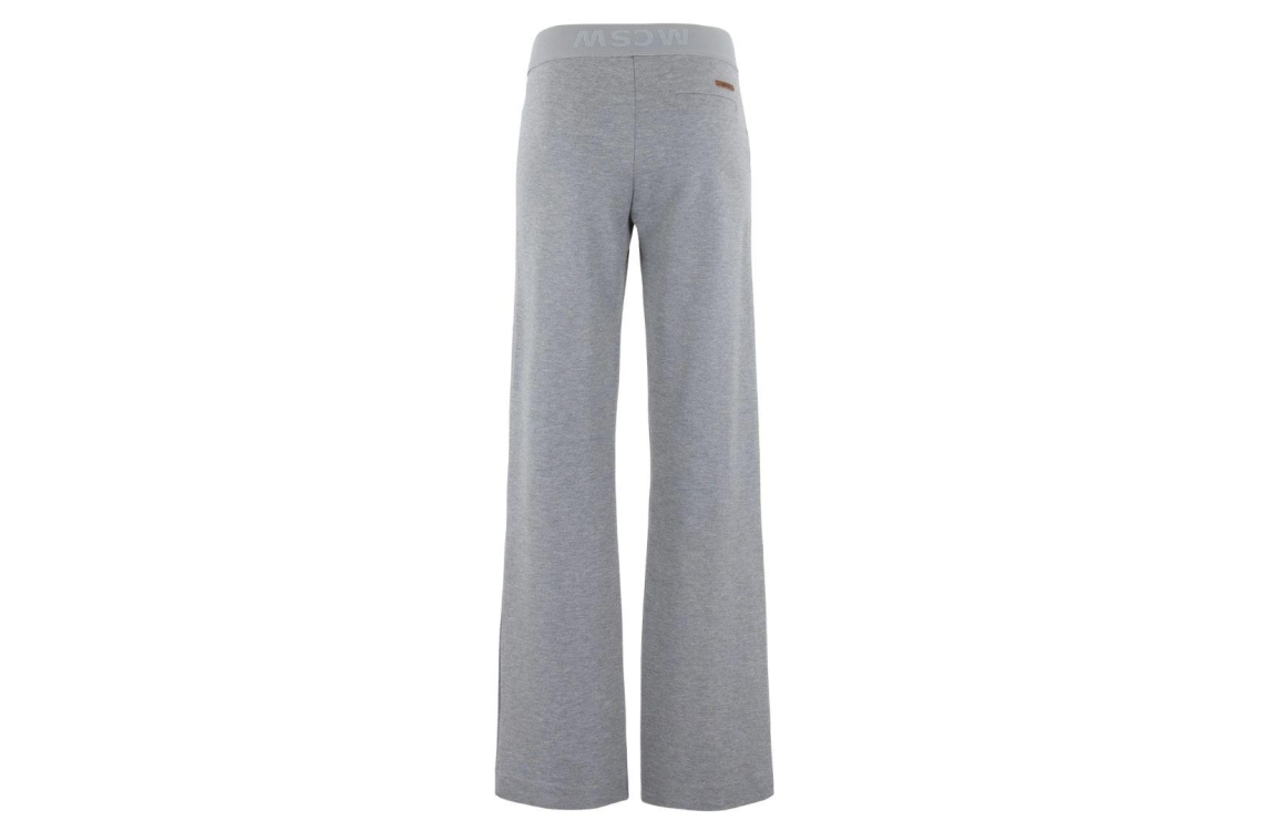 Moscow broek 56-02-Dawn-1. Dit wide fit model sluit door middel van een elastische boord, getailleerd met het merkembleem. Deze grijze broek van Moscow is voorzien van twee steekzakken aan de voorzijde en een paspelzak aan de achterzijde. Het model heeft een comfortabele pasvorm en is afgewerkt met het bruinkleurige merkembleem boven de paspelzak.