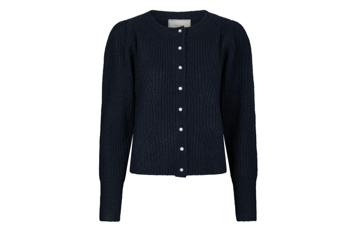 Neo Noir vest Puli 164838. Dit rechtvallend model is voorzien van een ronde hals en heeft lange mouwen. Deze baluwe geribde vest van Neo Noir sluit door middel van parelknopen.