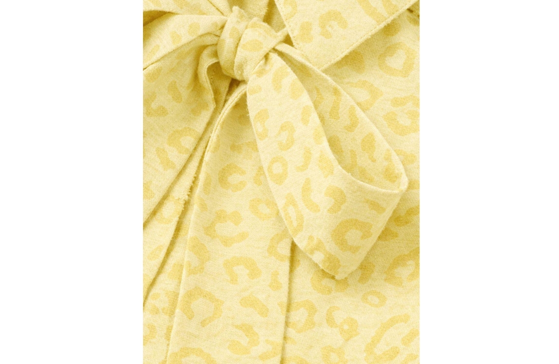 Nikkie Pragues Leopard Blouse 3996 Lemonade. Dit soepelvallende model heeft een kraag met strik, lange mouwen en sluit door middel van knopen. Deze gele blouse van Nikkie is voorzien van een stoere panterprint en afgewerkt met verschillende ruffle details.