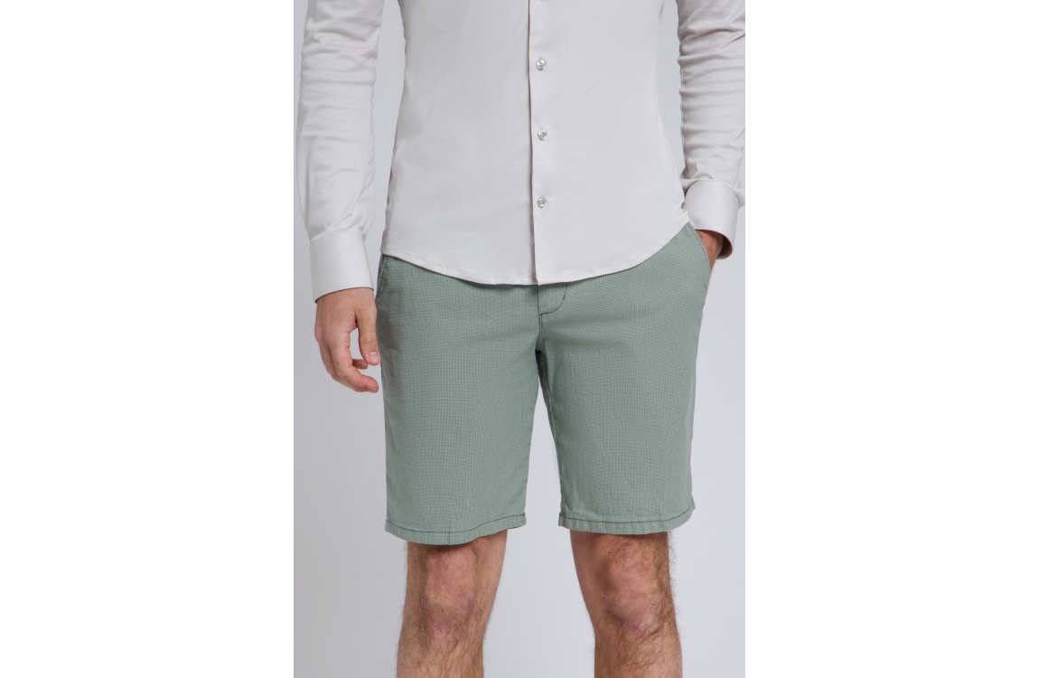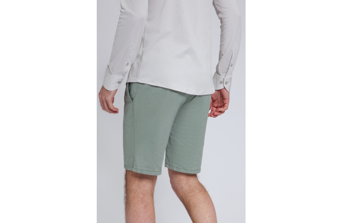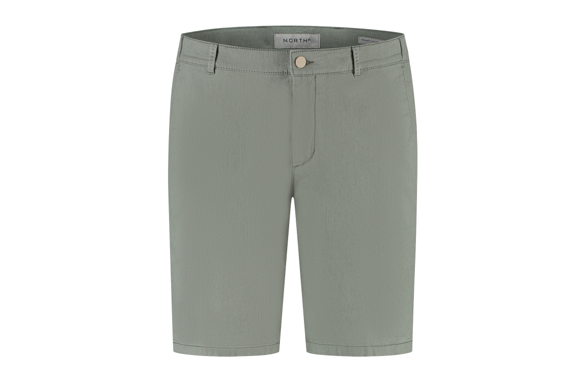 North84 Elegance shorts 84462120. Dit rechtvallend model sluit door middel van een knoop en rits afgewerkt met ceintuurlussen. Deze groene short van North84 beschikt over steekzakken aan de voorzijde en twee fake paspelzakken aan de achterzijde.
