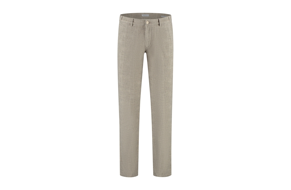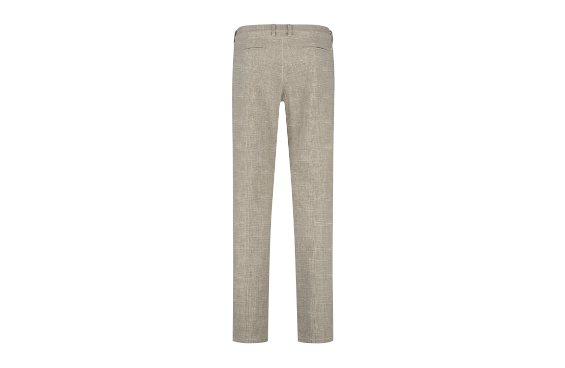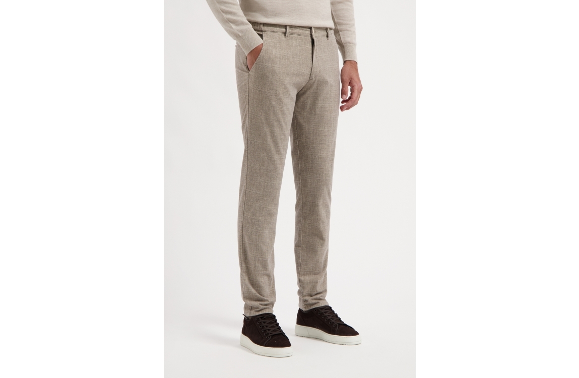 NORTH84 Luxury Chino Collection 251 beige. Dit regular fit model heeft lange broekspijpen en sluit door middel van een knoop en een rits. Deze beige broek van NORTH84 beschikt over twee steekzakken aan de voorzijde en twee paspelzakken aan de achterzijde. Dit model is afgewerkt met een patroon en ceintuurlussen.