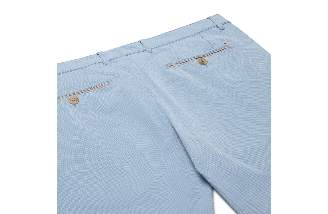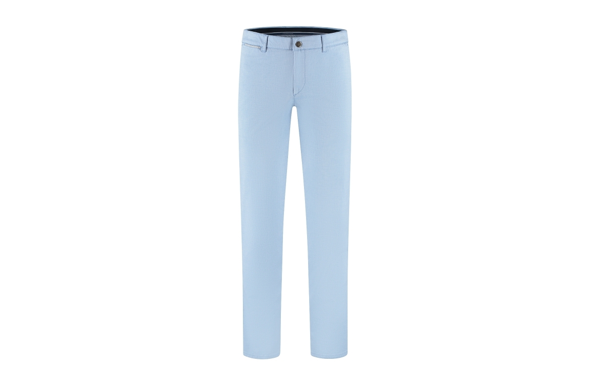 NORTH84 Luxury Comfort Chino 21282133. Dit rechtvallend model sluit door middel van een knoop en een rits. Deze licht blauwe chino van NORTH84 is voorzien van verschillende broekzakken en ceintuurlussen.