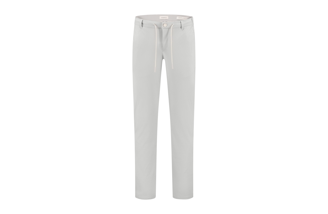 NORTH84 sensitive travel collection 84142010. Dit slim fit model heeft lange broekspijpen en sluit door middel van een knoop en een rits. Deze licht grijze broek van NORTH84 is afgewerkt met riemlussen en beschikt over 2 steekzakken met 1 muntzakje achter een rits.