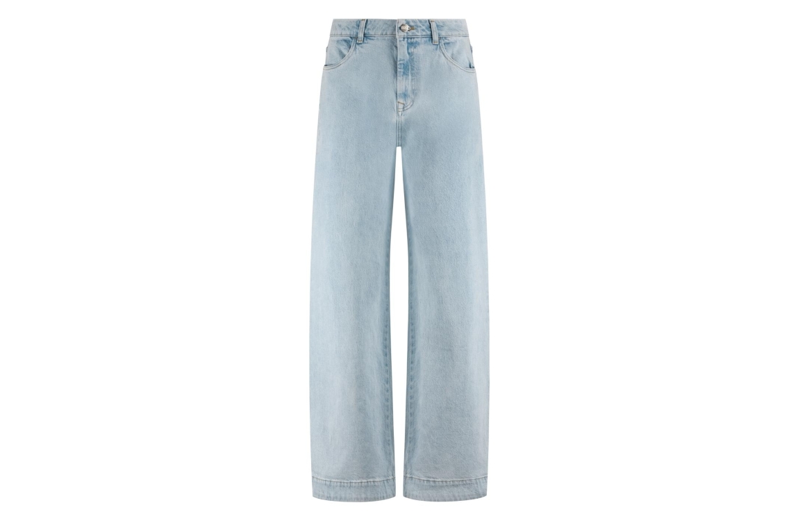 NUKUS Abby Pants Denim Strass 24 bleached denim. Dit wide leg model sluit door middel van een knoop en rits afgewerkt met ceintuurlussen. Deze licht blauwe jeans van Nukus is uitgevoerd met een opvallend detail: een glitterdesign op de achterzak voor een subtiele sparkle.